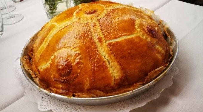 Pasticcio là một trong những món có từ thời Phục hưng của thành phố Ferrara, và vẫn được người dân ăn ngày nay. Nó gồm một chiếc bánh chứa đầy phô mai, mì macaroni, thịt hầm và nước sốt bechamel. Vỏ bánh làm từ bột mì, ngọt, còn phần nhân mang vị mặn, đậm đà, béo ngậy. Ảnh: Turismo