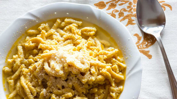 Trong hàng trăm phiên bản mỳ ống, passatelli là một trong những món hấp dẫn nhất, được làm từ vụn bánh mì, thay vì bột mì, kết hợp cùng trứng để kết dính và phô mai parmesan tạo mùi thơm. Bột được cắt nhỏ thành những đoạn dài bằng hai đốt ngón tay, hình tròn, gần giống hình con sâu. Vì món ăn có sẵn hương vị đầm đà, nên đầu bếp chỉ rưới lên chúng nước dùng đơn giản. Ngoài ra, thực khách có thể ăn món này ở dạng khô, không có nước. Ảnh: Adobe Stock