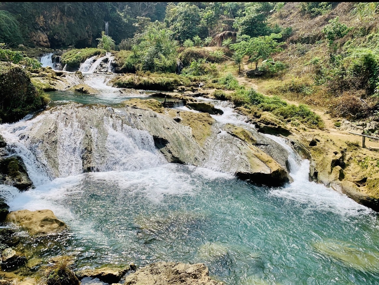 Càng lên tới tầng thác cao, Nàng Tiên càng hiện ra đẹp lung linh với màu nước trong vắt, xanh như ngọc