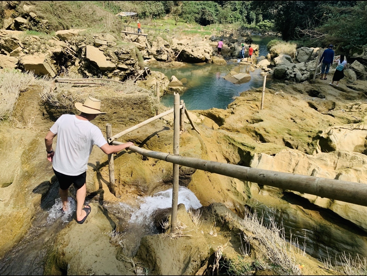 Một số đoạn hiểm trở, đường lên thác được kê đá thành bậc giúp du khách lên xuống dễ dàng, chống trơn trượt