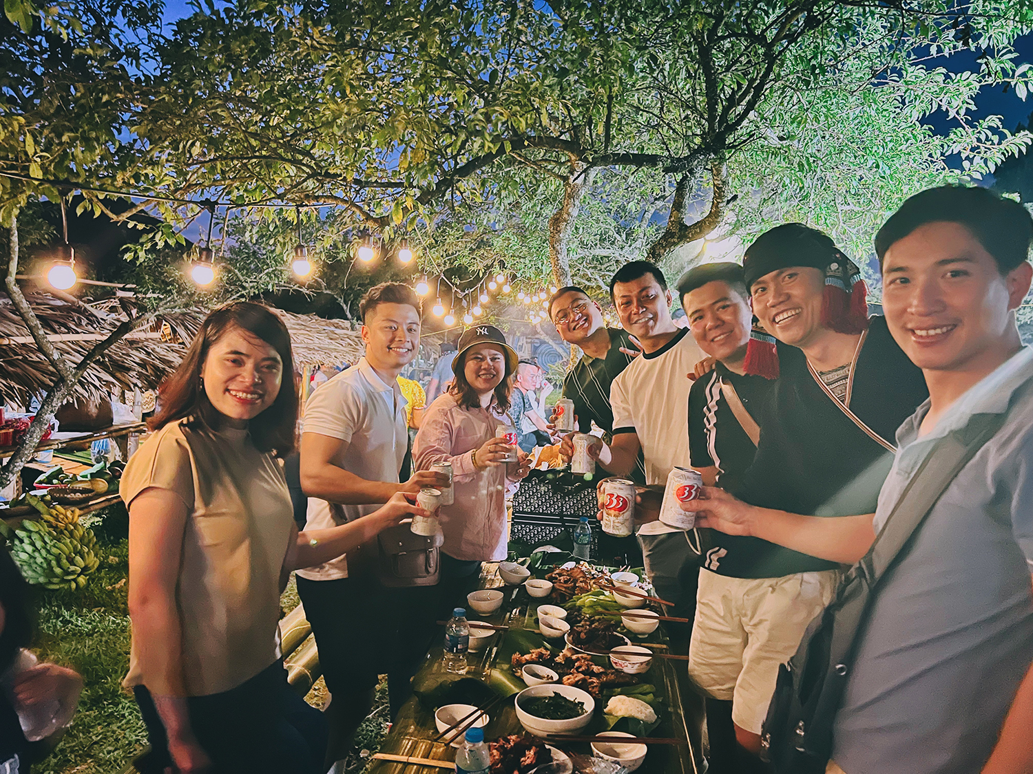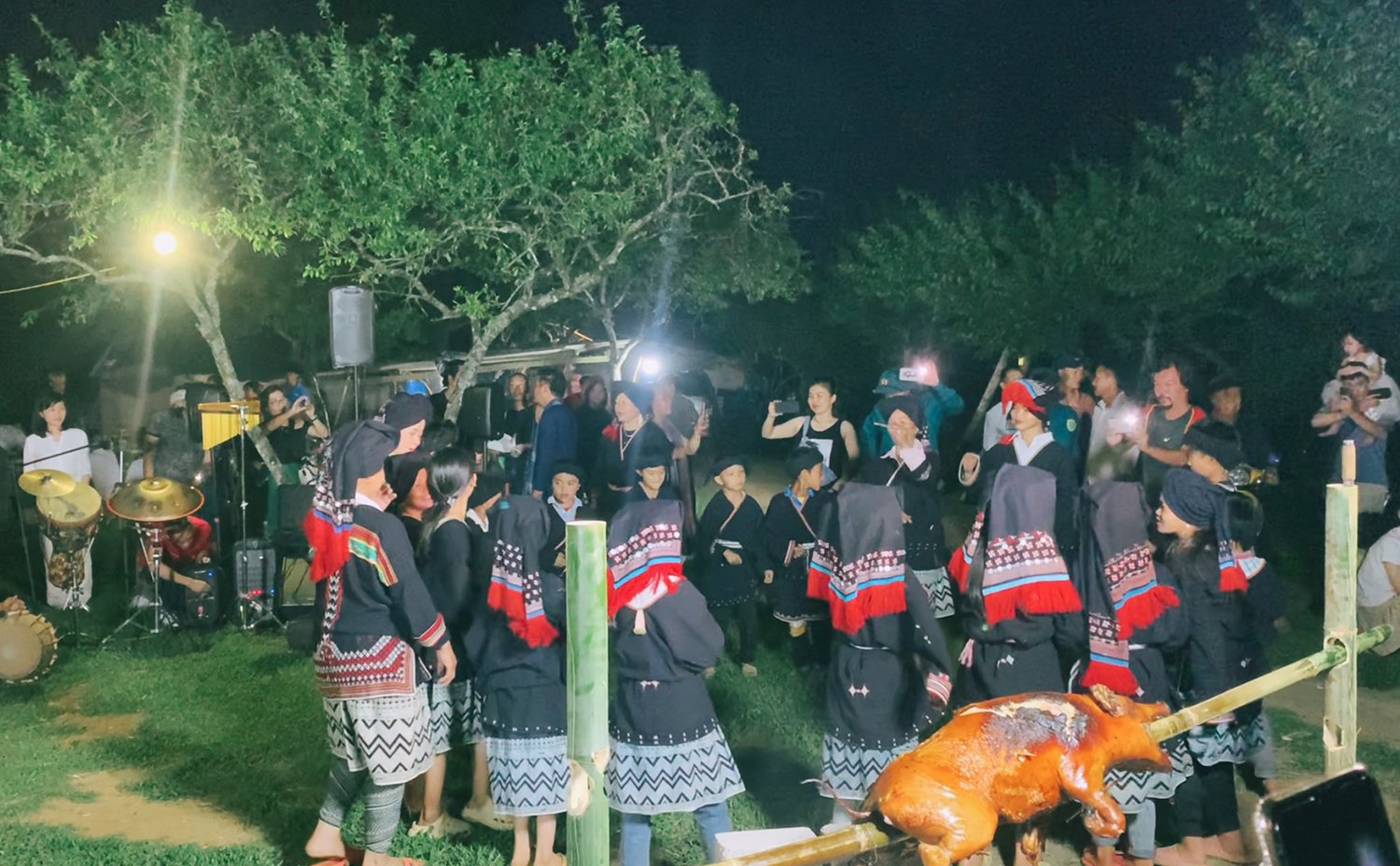 Khi mặt trời lặn, du khách nghe bà con dân tộc biểu diễn văn nghệ, thưởng thức đồ nướng ngay tại chỗ, chụp ảnh cùng trẻ em vùng cao...