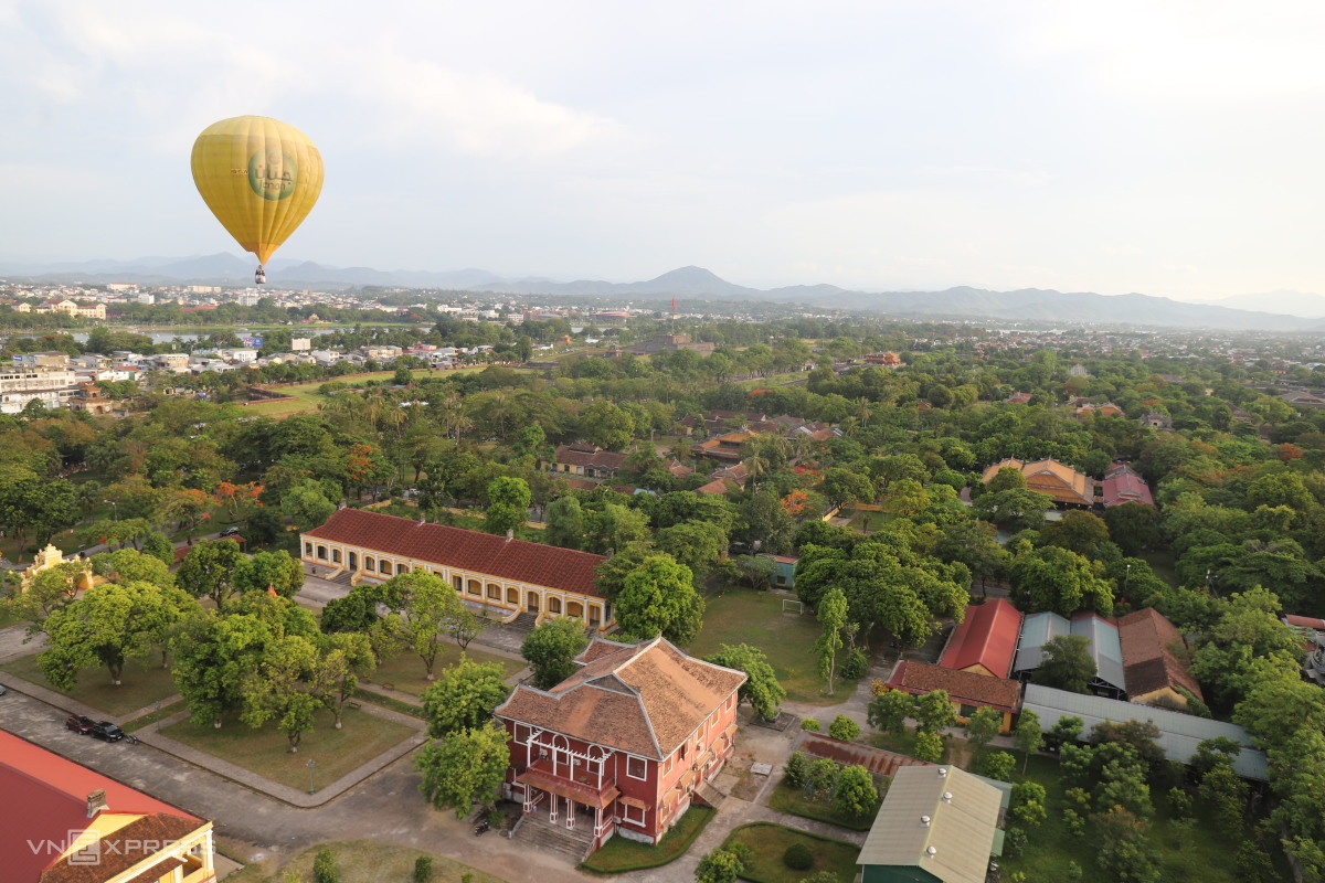 Khinh khí cầu rời khỏi sân Hàm Nghi nơi diễn ra lễ hội khinh khí cầu trong tuần lễ Festical Huế bay ngang qua Viện Cơ Mật nay là trụ sở của Trung tâm Bảo tồn Di tích Huế.