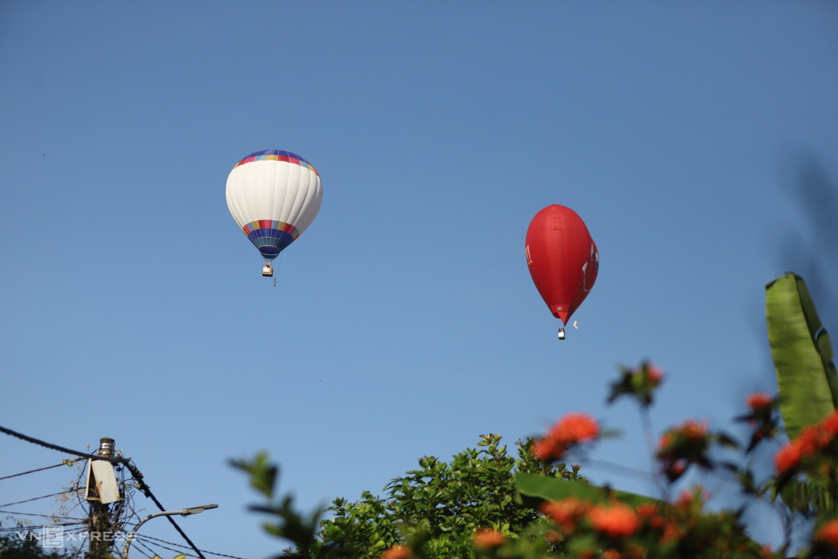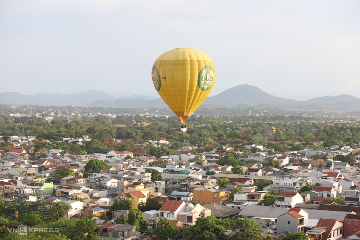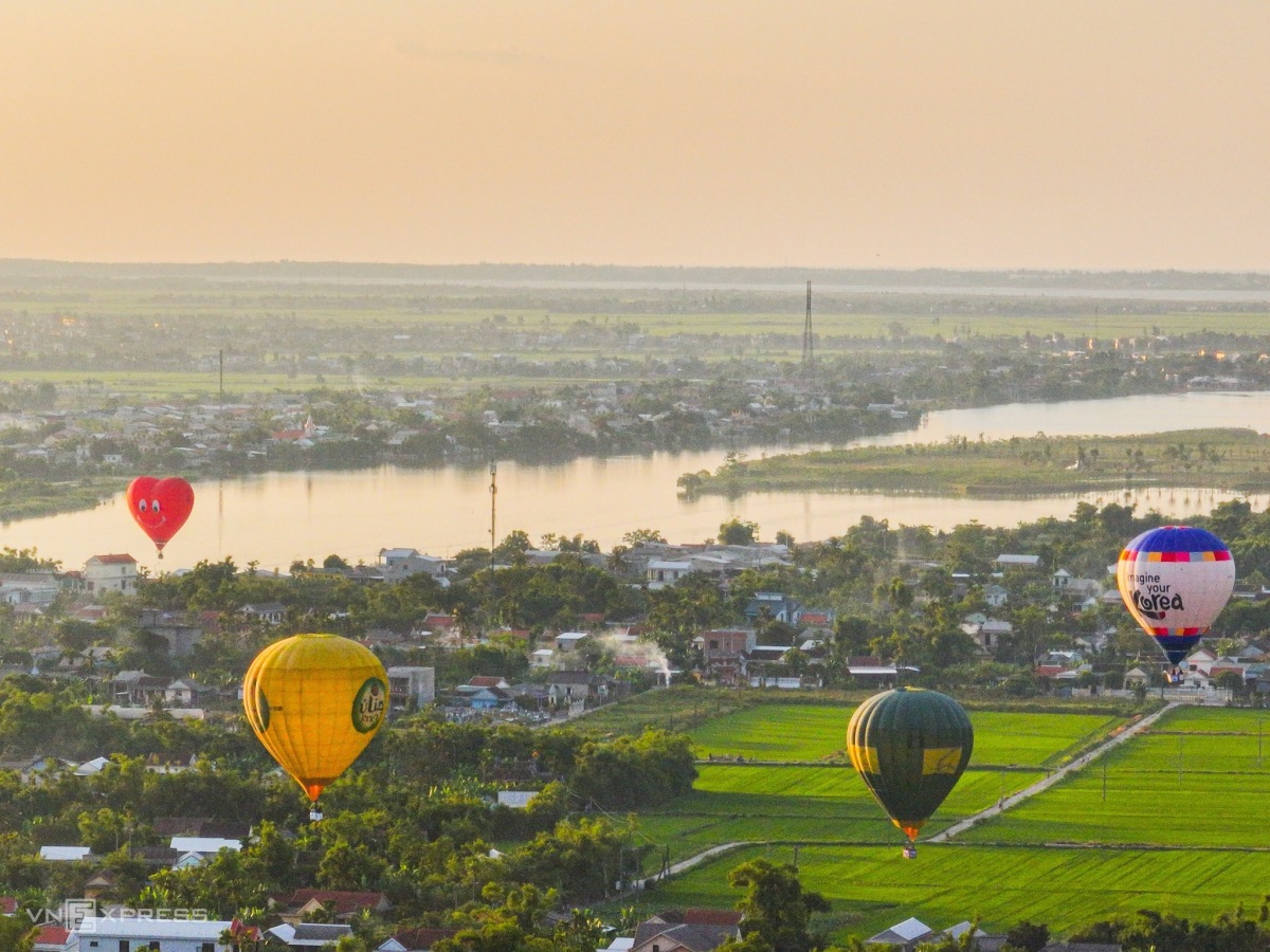 Bốn khinh khí cầu bay trên bầu trời thành phố Huế.