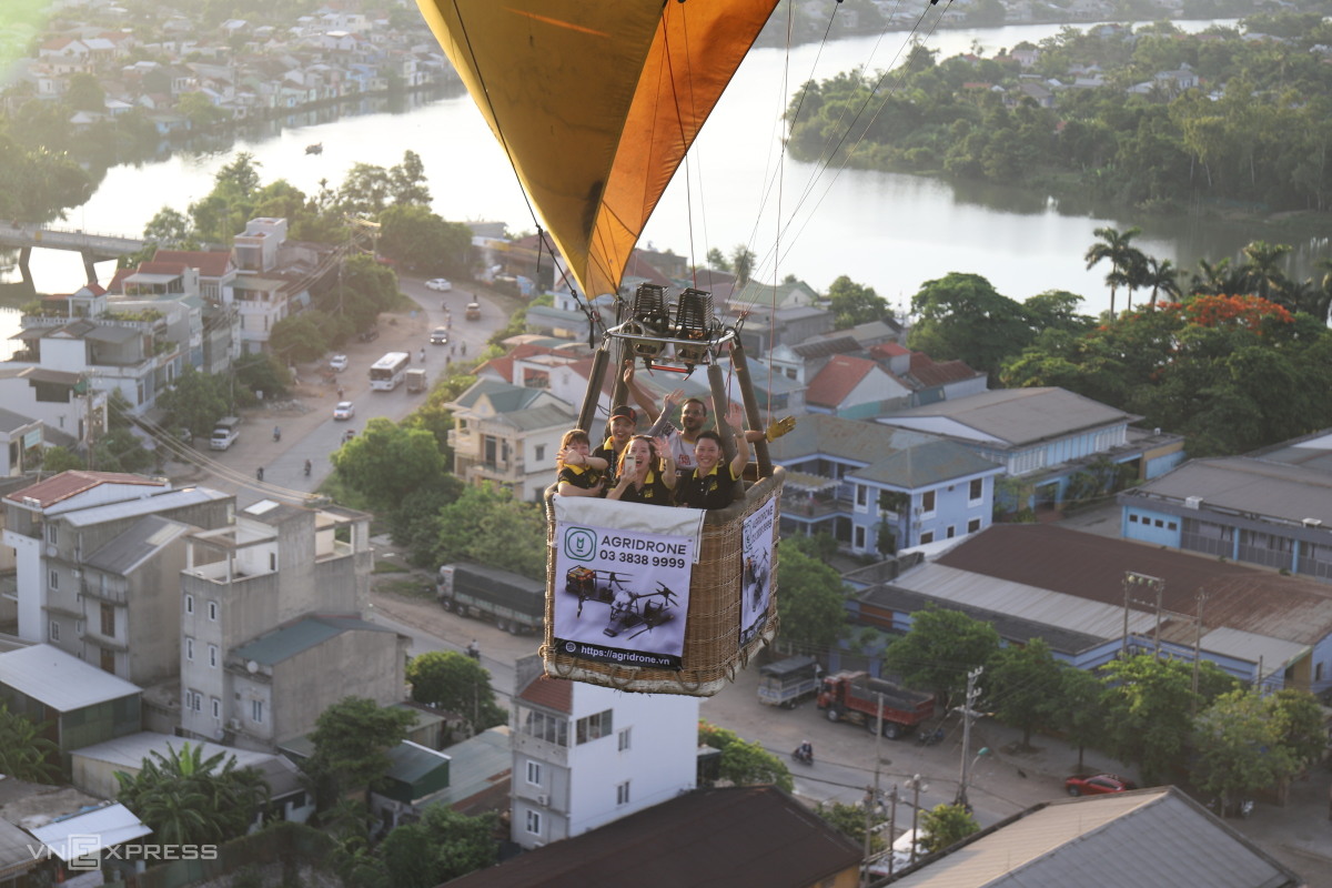 Khinh khí cầu đi qua cánh đồng lúa làng Tiên Nộn, xã Phú Mậu. Khung cảnh nơi đây làm cho nhiều du khách cảm thấy thích thú khi trở về với tuổi thơ.