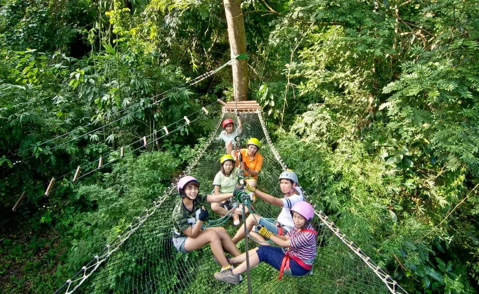 Công viên Tree Top Adventure Park Krabi: Nằm sâu trong rừng và được bao bọc bởi những vách đá vôi, đến đây, bạn sẽ được trải nghiệm những trò chơi cảm giác mạnh như: đu dây zipline, trekking,..