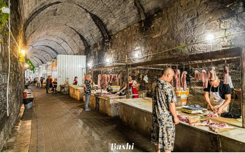 Khu chợ “đường hầm” nằm ở gần Trạm xe buýt Ying Shan Hong, Quận Sha Ping Bei, Thành phố Trùng Khánh, chợ thường họp từ 7h sáng các tuần trong ngày.