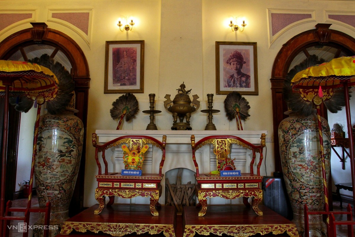 Sảnh dinh thự bố trí ghế ngồi của vua Bảo Đại và hoàng hậu Nam Phương ở chính giữa. Ngày nay, du khách có thể thuê quần áo vua và hoàng hậu, ngồi trên ghế để chụp ảnh.