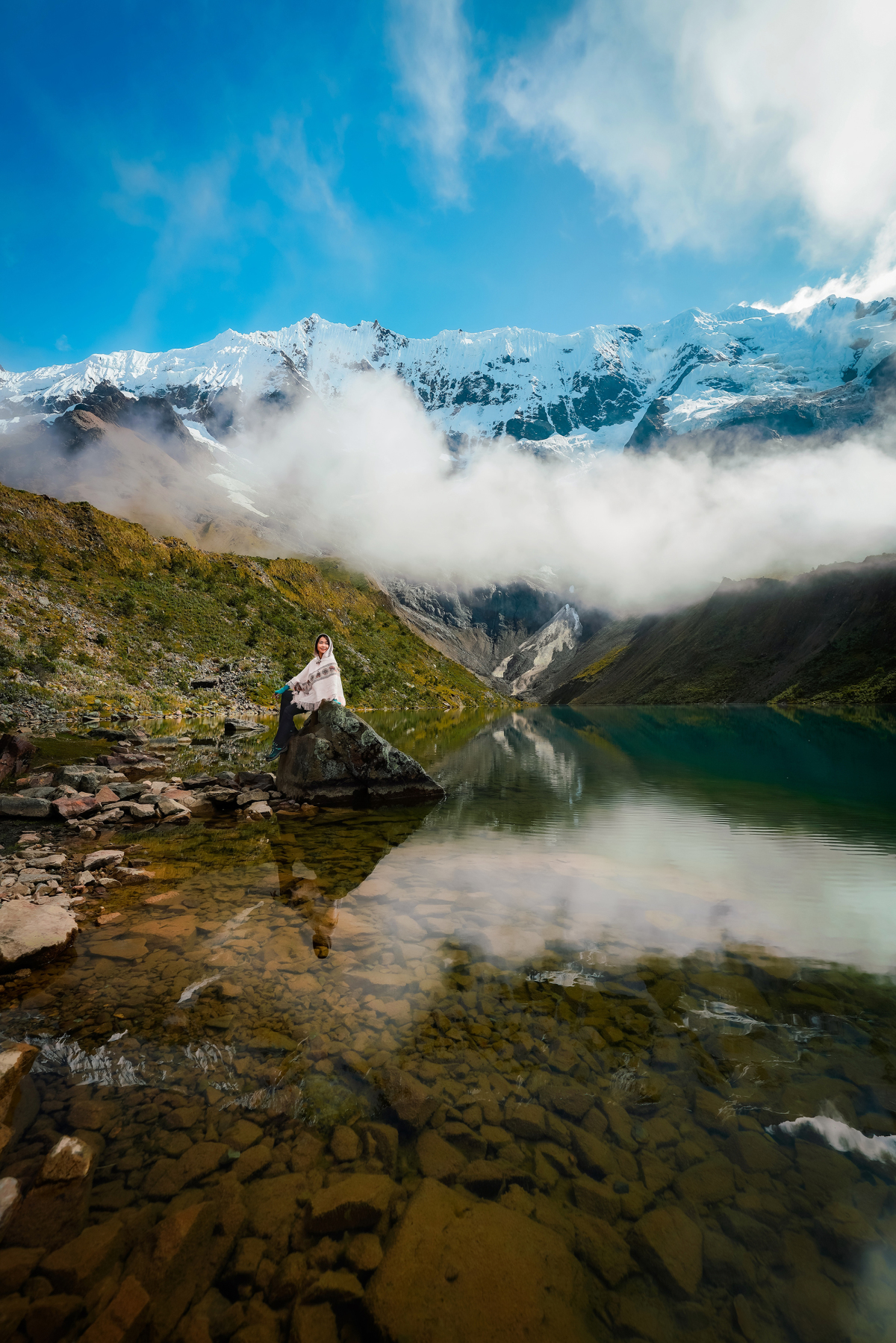 "Khi vượt qua được đỉnh núi cuối cùng và nhìn thấy mặt nước hồ xanh ngắt dưới chân núi tuyết Humantay, bên trên là những dải mây vờn quanh hồ mà bạn có thể chạm vào được, bao nhiêu mệt mỏi tan biến, tất cả mọi người đều ngồi im lặng để tận hưởng khoảnh khắc hiếm có trong cuộc sống", anh Tùng tả. Nhìn những bức ảnh chụp lại tại hồ Humantay, chắc hẳn nhiều du khách sẽ cho rằng đây là cảnh quan ở vùng núi châu Âu nào đó như Thụy Sỹ hay Na Uy. Có những lúc mây vờn xuống gần mặt hồ, khiến bạn cảm thấy như cảnh thần tiên.
