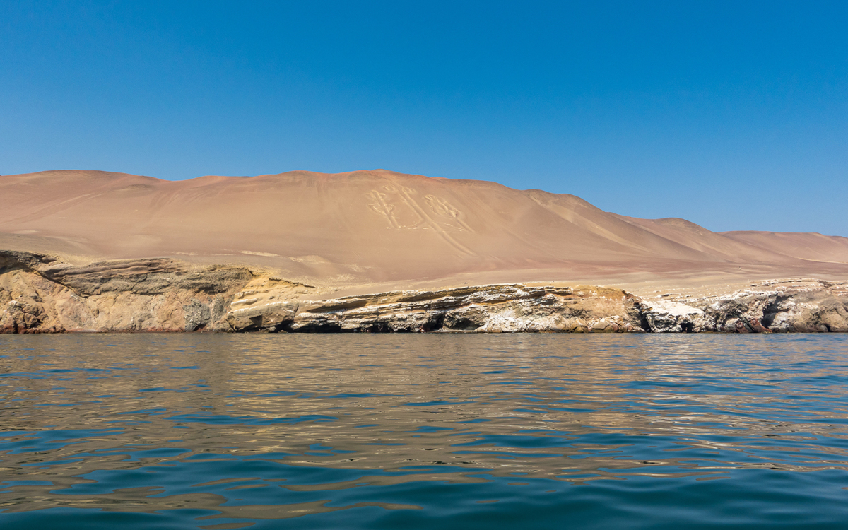 Trong ảnh là hình vẽ khổng lồ Candelabra giống giá để nến, tại hoang mạc Paracas có niên đại hơn 2.000 năm, được coi là điểm bắt đầu các hình vẽ Nazca lines cách đó gần 200 km. Đây là một trong những khu vực khô nhất trên trái đất với lượng mưa vô cùng ít ỏi, do vậy các hình vẽ này được bảo quản tốt qua hàng nghìn năm.