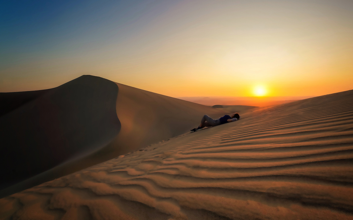 Sa mạc Ica với những đụn cát cao tới 500 m, là nơi ngắm hoàng hôn đẹp ở Peru. Tại đây có dịch vụ trải nghiệm mạo hiểm xe buggy leo các đụn cát. Sau khi lên đỉnh đụn cát cao nhất, du khách thể trượt xuống bằng ván trượt. Tại đây, vợ chồng anh thấy mình như bước theo dấu chân nhân vật trong quyển "Nhà giả kim".