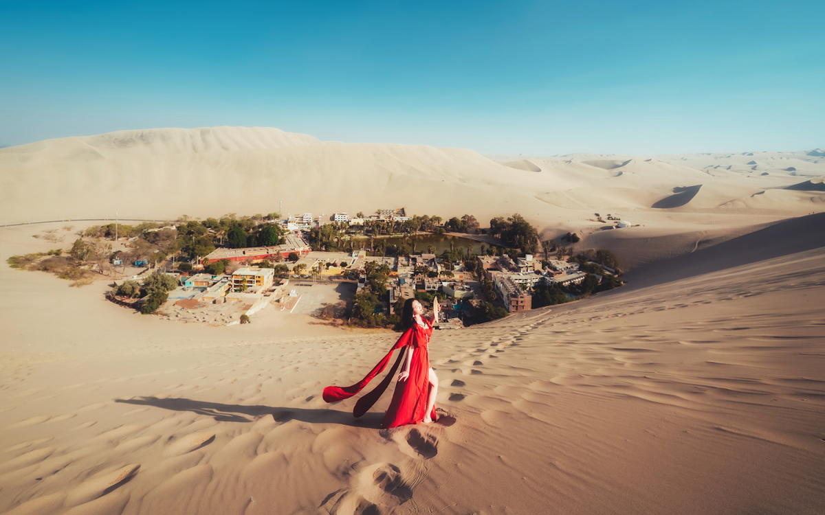 Thị trấn ốc đảo Huacachina nằm sâu trong sa mạc. Chỉ có một đường độc đạo dẫn tới ốc đảo này. Huacachina từ lâu đã là nơi nghỉ dưỡng độc đáo và điểm du lịch nổi tiếng của Peru.