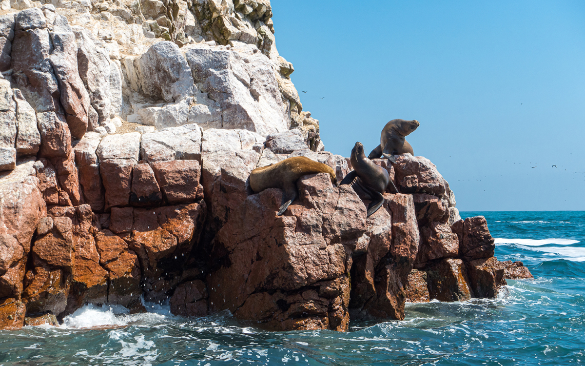 Thị trấn ven biển Paracas với quần đảo Ballestas được ví như "Galapagos thu nhỏ", là nơi sinh sống được bảo tồn của rất nhiều loài chim, động vật biển như hải âu, chim cánh cụt Humboldt, hải cẩu, sư tử biển, cá heo... Ballestas là quần đảo được bảo tồn tự nhiên nhiên tại Peru. Điều thú vị là với lượng chim lớn, từ lâu phân của chúng trên quần đảo đã được thu gom và là nguồn thu rất lớn cho Peru nhiều năm trước. Trong ảnh là hải cẩu đang "nhảy múa" khi thấy du khách tới gần.