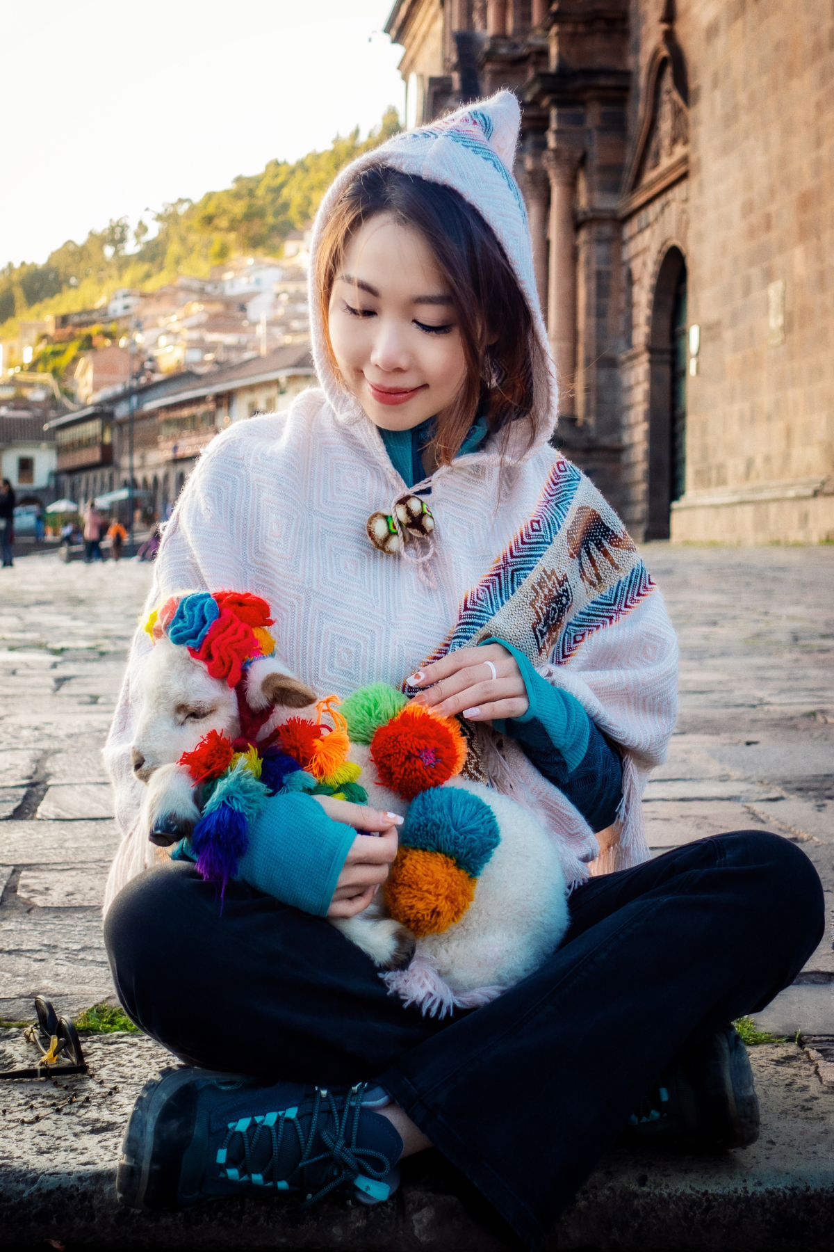 Tại đây vợ chồng anh có cơ hội chụp ảnh với lạc đà không bướu llma, loài vật đặc trưng ở Peru. Đi dọc các khu phố cổ kết nối các quảng trường ở Cusco, du khách sẽ bắt gặp nhiều phụ nữ Quechua mặc trang phục dân tộc dắt theo llama để chụp ảnh cùng du khách. "Đó là những kỷ niệm đáng nhớ ở Cusco nếu không có những hành động chèo kéo du khách", anh Tùng nói. Nếu gặp tình huống này và thật sự không muốn, bạn hãy tỏ thái độ rõ ràng, còn nếu muốn có một bức ảnh với con vật đáng yêu này, hãy cám ơn chủ nhân của nó bằng một món tiền nhỏ tùy tâm.