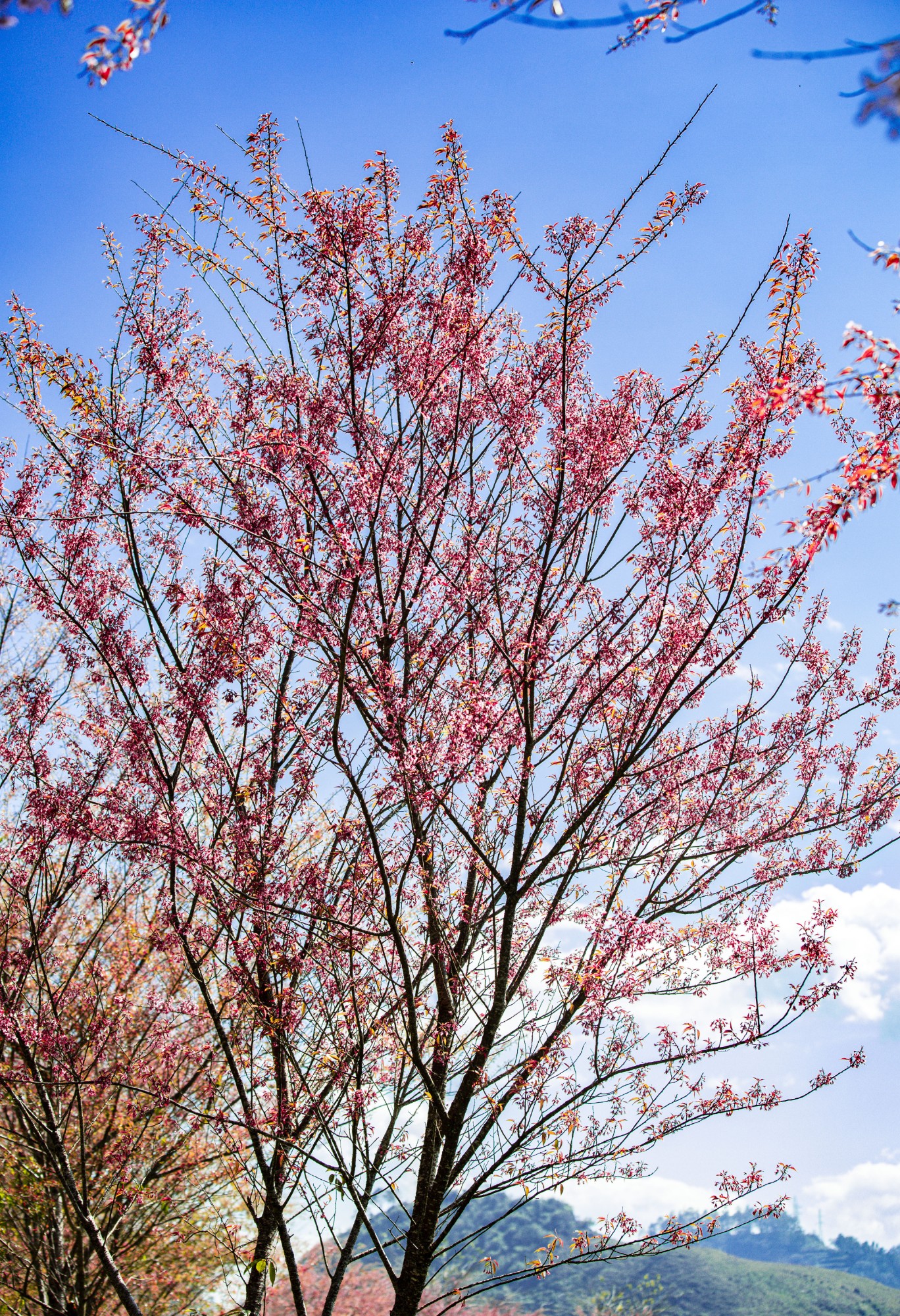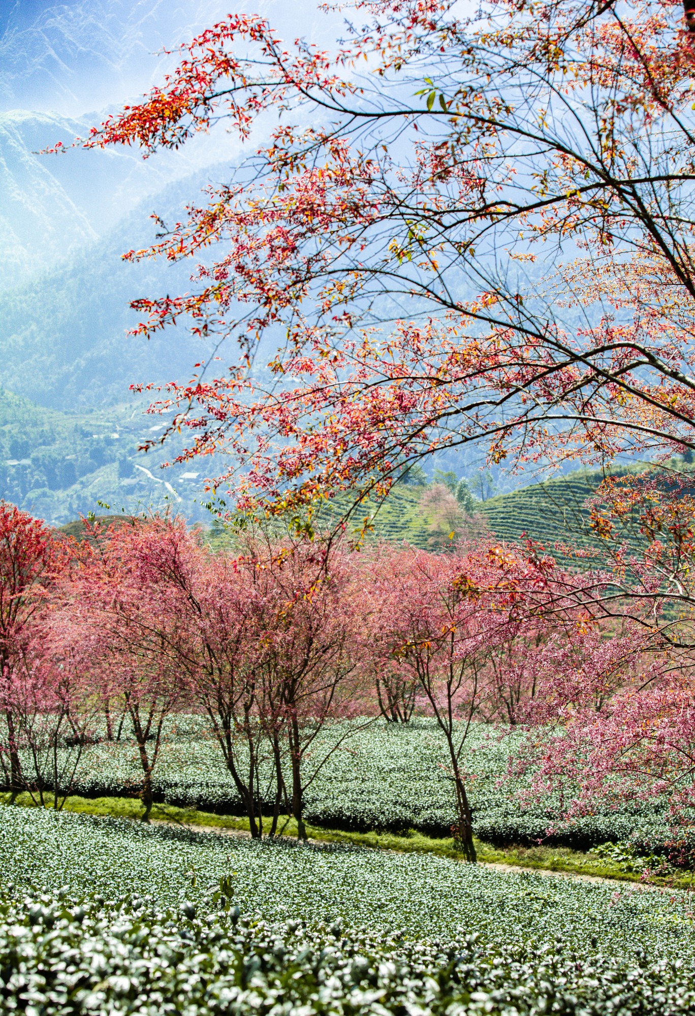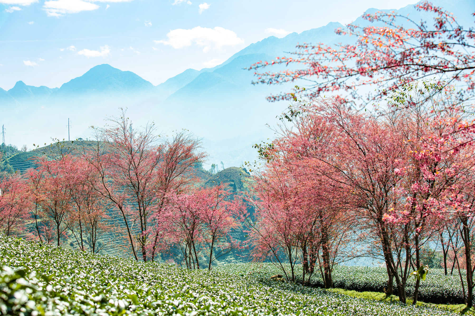 Hoa mai anh đào nở rộ ở đồi chè Ô Long. Ảnh: Dương Quốc Hiếu