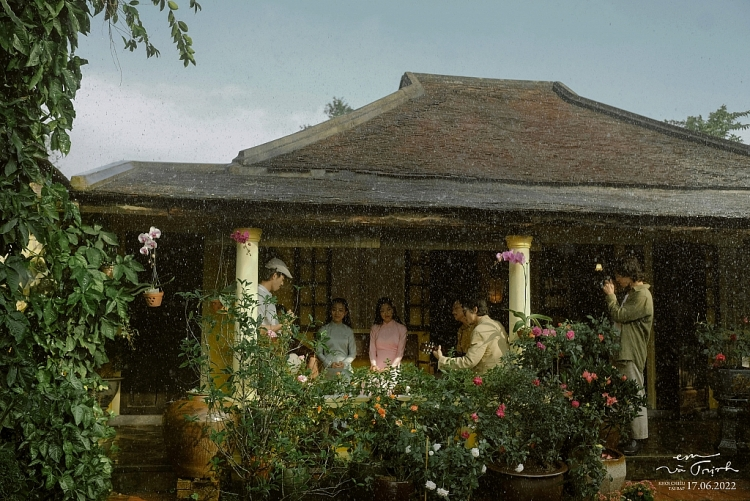 Nhà của chị em Bích Diễm, Dao Ánh ở ngoài đời là nhà vườn An Hiên. Nhà vườn quay về phía sông Hương, chịu ảnh hưởng của thuật phong thủy, kiến trúc và thiên nhiên hòa hợp, rộng khoảng 5.000 m2, quay hướng chính về phía sông Hương. Ảnh: Em và Trịnh, Hà Thành