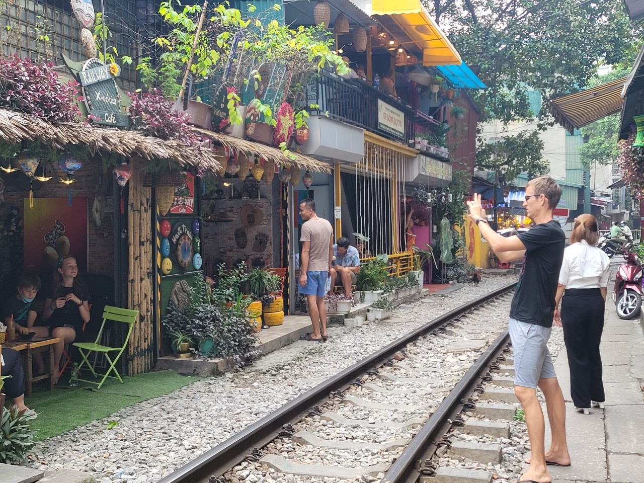 Phố cà phê đường tàu Hà Nội thời điểm tháng 10.2022 còn đông du khách (Ảnh: VI NGUYỄN).Phố cà phê đường tàu Hà Nội nằm đầu danh sách không đến năm 2023 của CNN. "Con phố từ lâu gây nhiều tranh cãi, dù nổi tiếng khắp thế giới với cảnh đoàn tàu chạy trên đường ray giữa hai bên hàng quán cách nhau chỉ vài gang tay. Địa điểm này thu hút du khách đến để trải nghiệm cảm giác hồi hộp khi đứng giữa đường ray tạo dáng chụp hình. Tuy nhiên, tình trạng quá tải trên phố cà phê đường tàu đã khiến nơi này mất an toàn, thậm chí tàu phải dừng lại vài phút để tránh người", tờ báo viết.