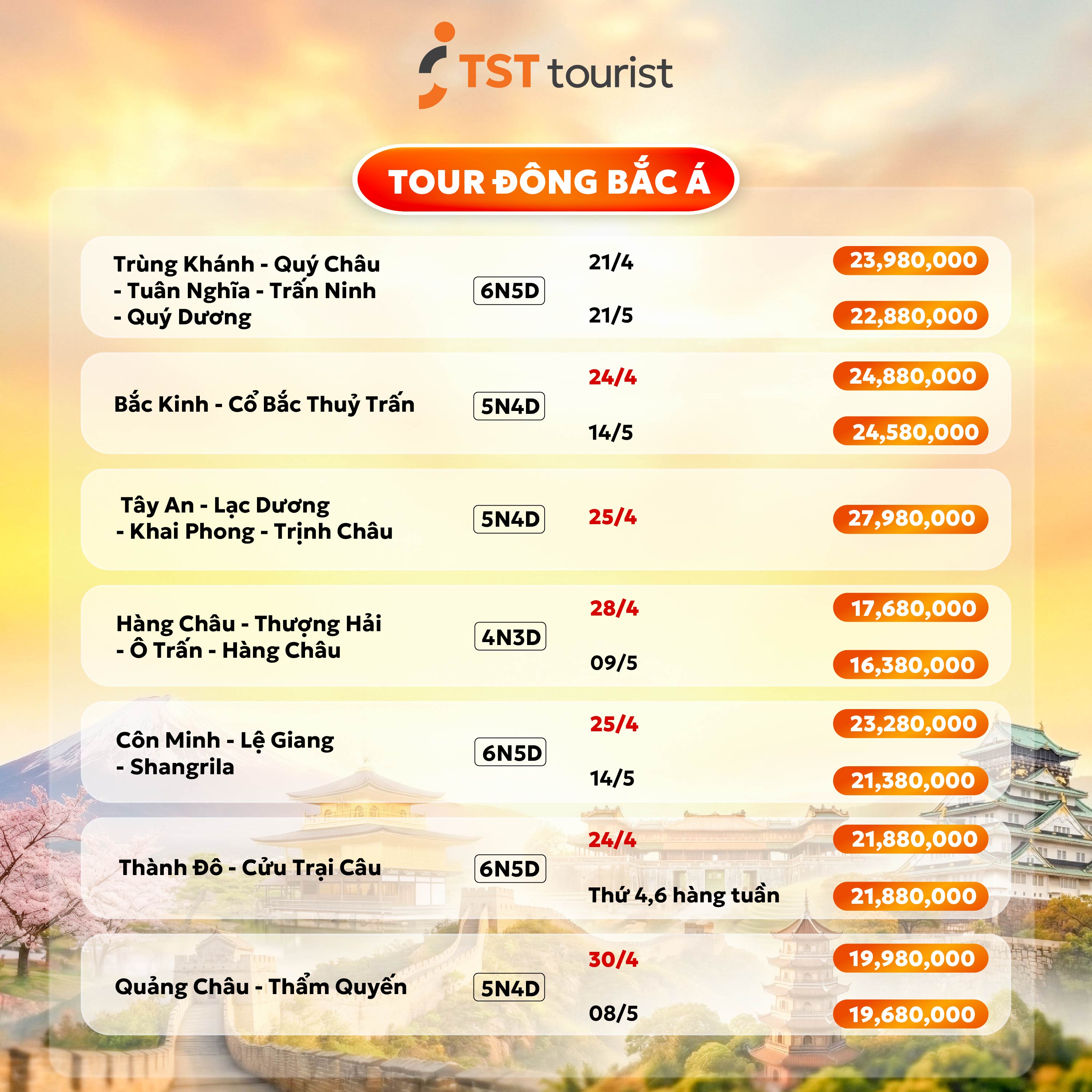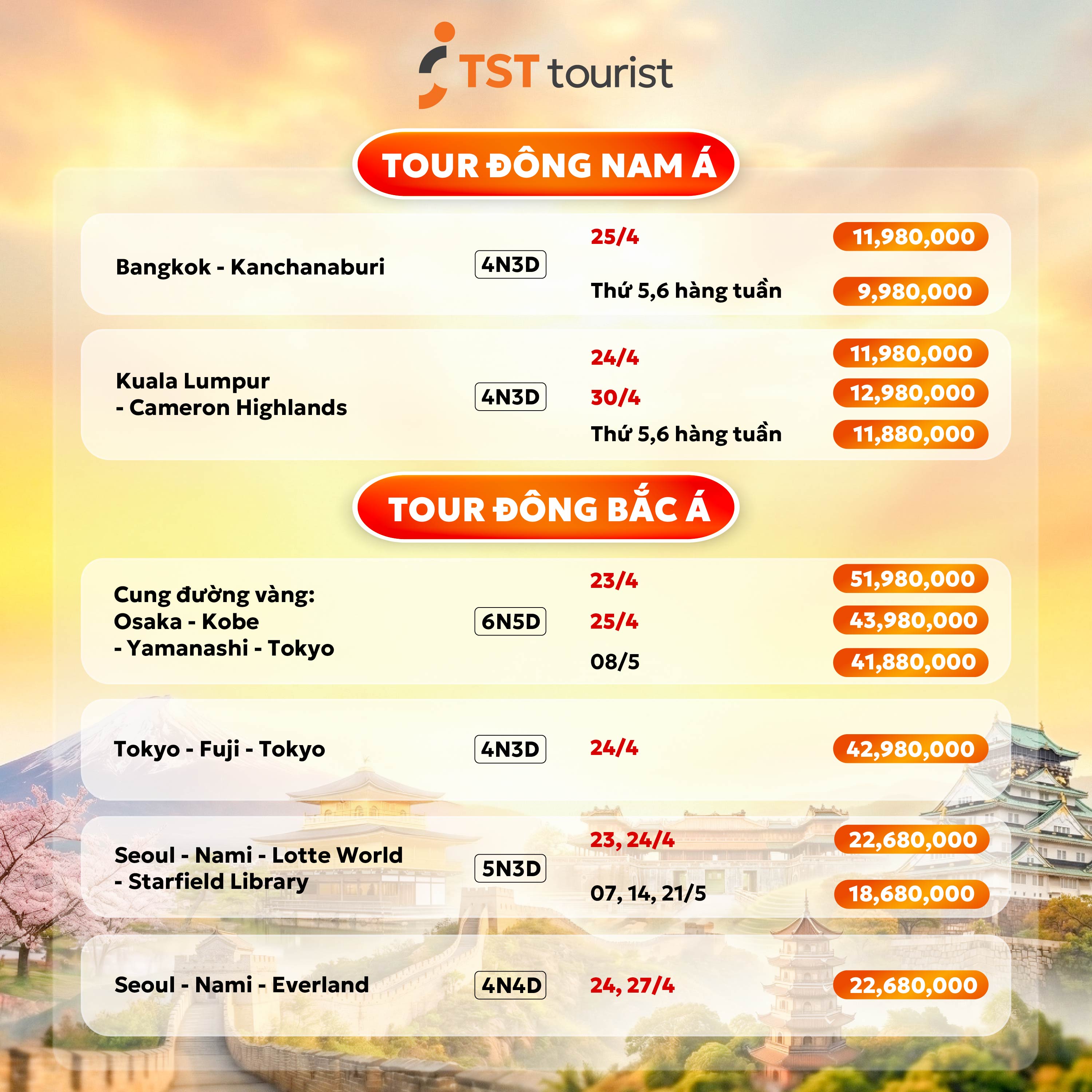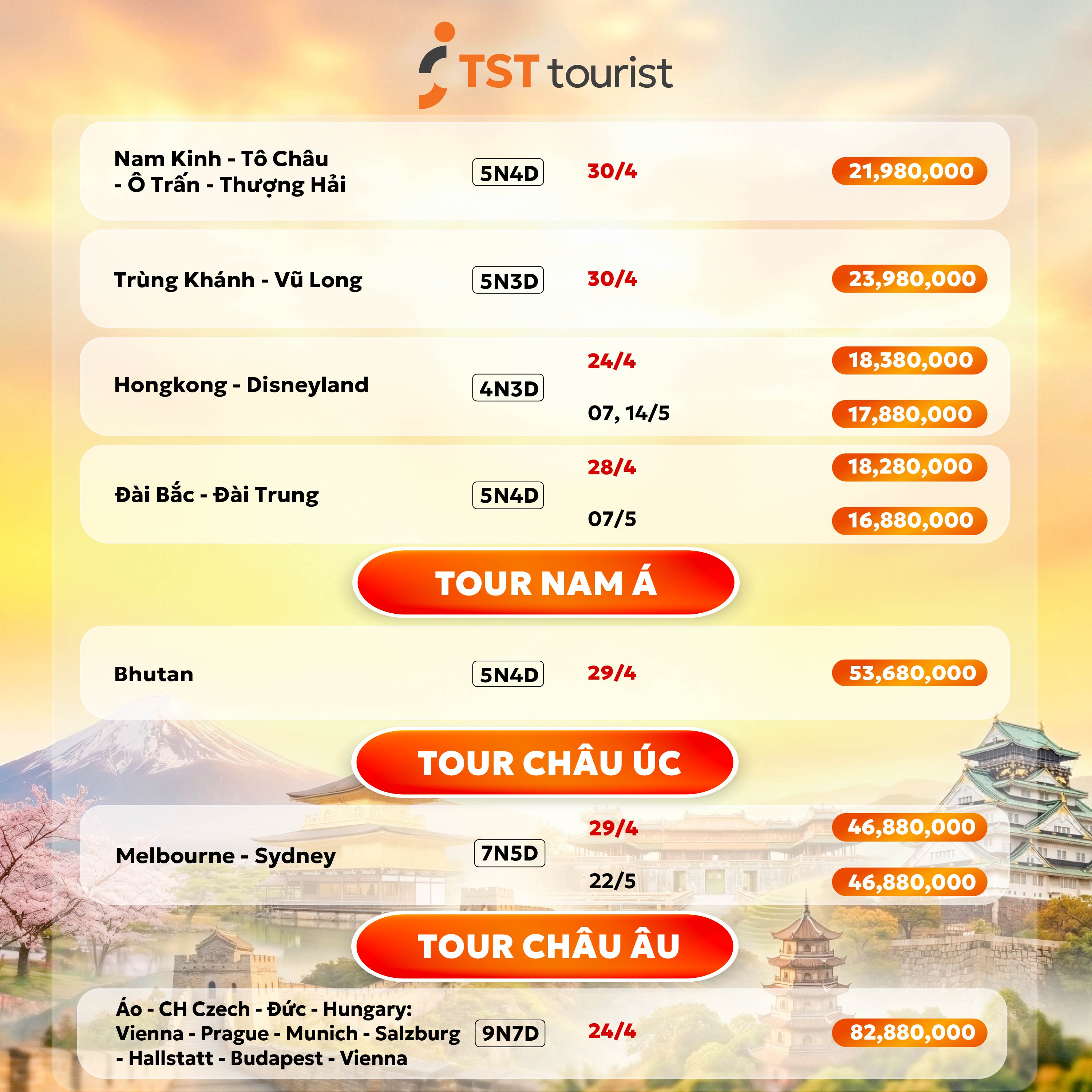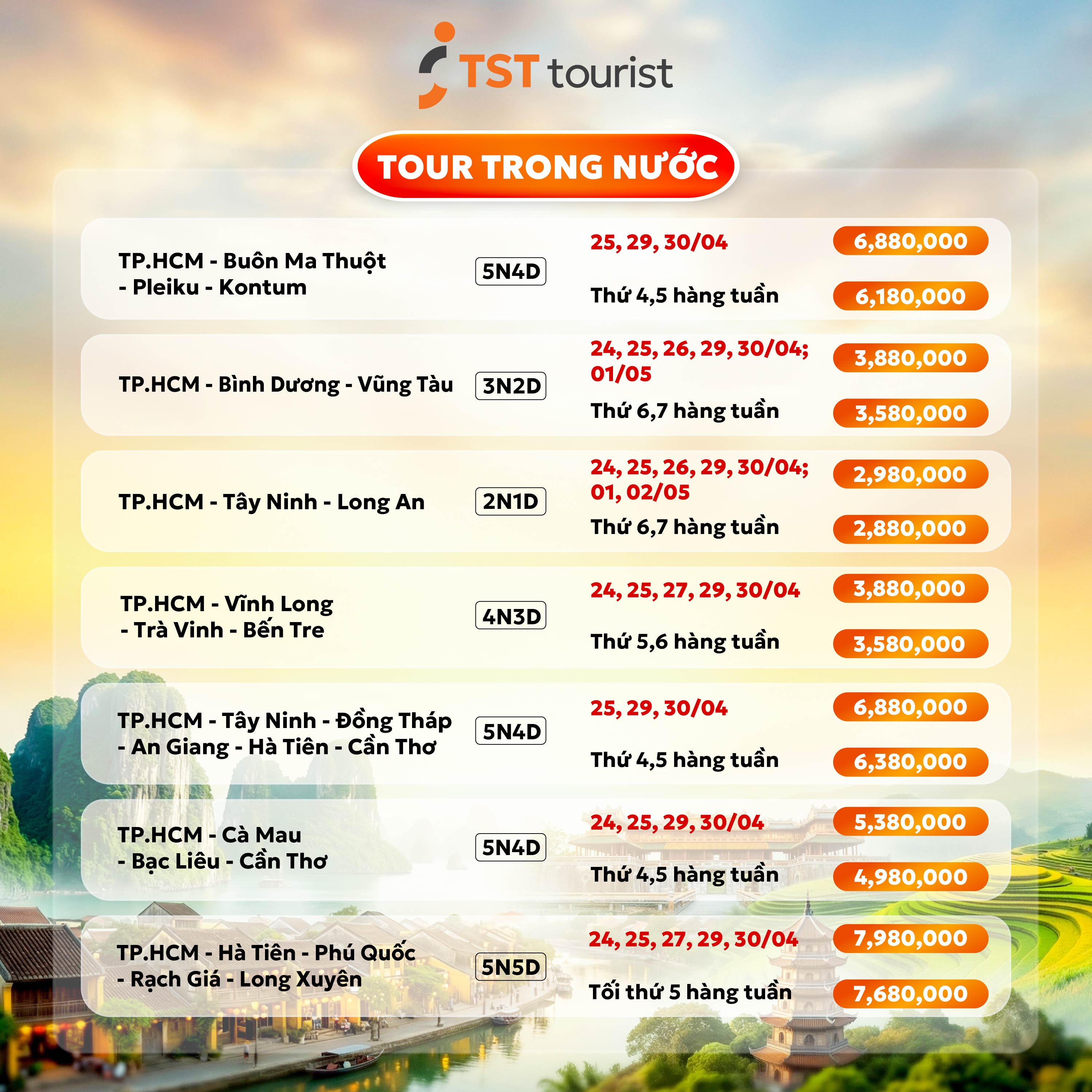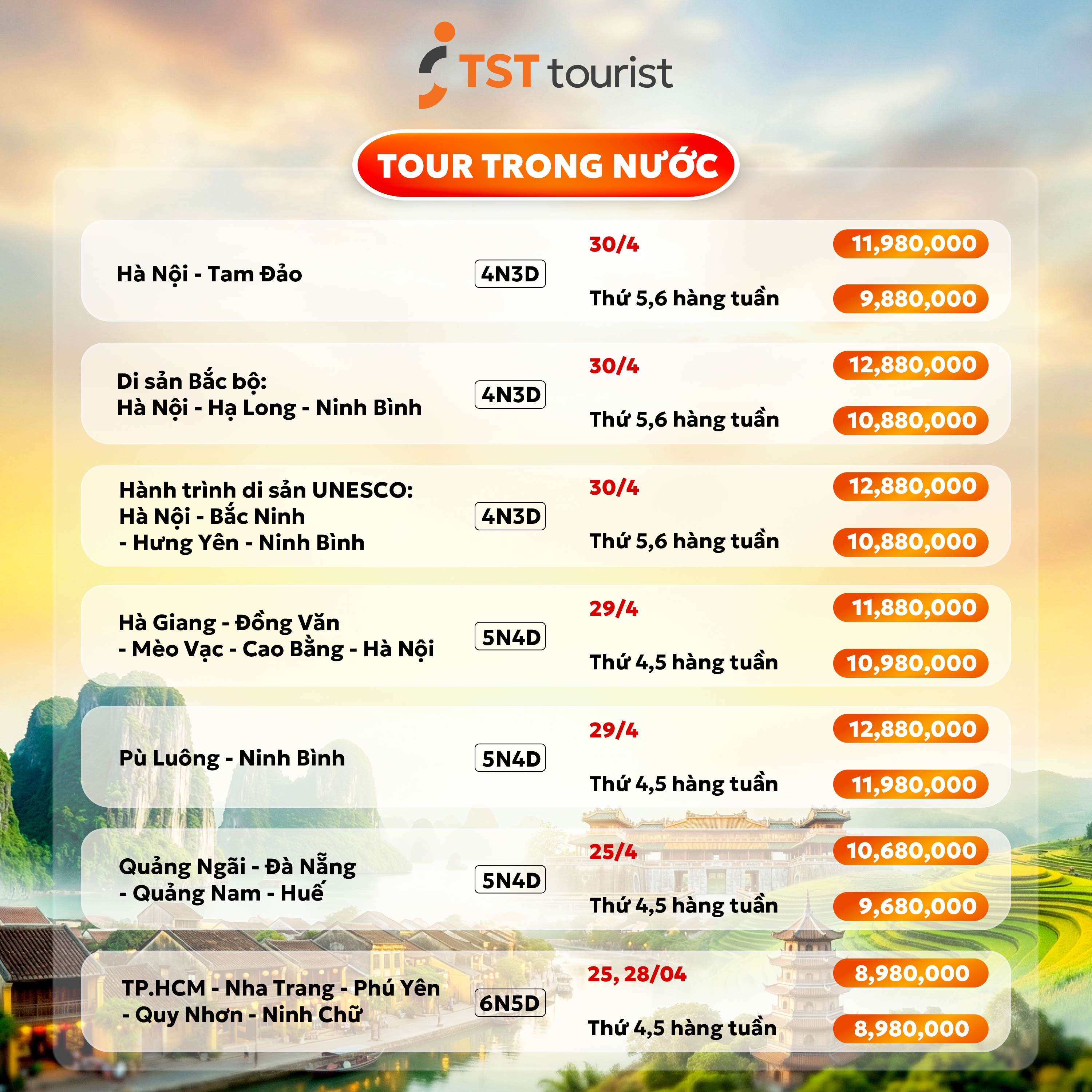 Với kinh nghiệm nhiều năm trong lĩnh vực lữ hành, TST Tourist không ngừng đổi mới và hoàn thiện để mang đến những sản phẩm du lịch chất lượng, đáp ứng kỳ vọng ngày càng cao của du khách. Đây cũng là thời điểm lý tưởng để bạn lên kế hoạch sớm, lựa chọn hành trình phù hợp và tận dụng tối đa kỳ nghỉ dài ngày hiếm có trong năm.
