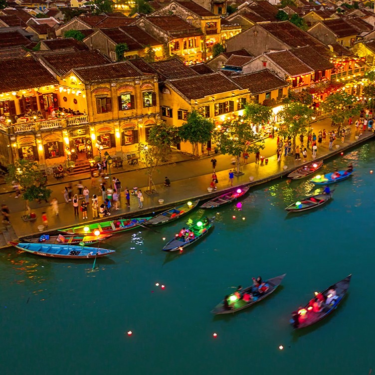 Đoàn ăn trưa tại nhà hàng địa phương và làm thủ tục nhận phòng. Buổi chiều, xe đưa đoàn tham quan phố cổ Hội An – khu phố cổ đã được UNESCO công nhận là Di sản Văn hóa Thế giới (1999). Từng là thương cảng quốc tế sầm uất, Hội An lưu giữ nhiều giá trị văn hóa - kiến trúc đặc sắc. Đoàn tham quan: