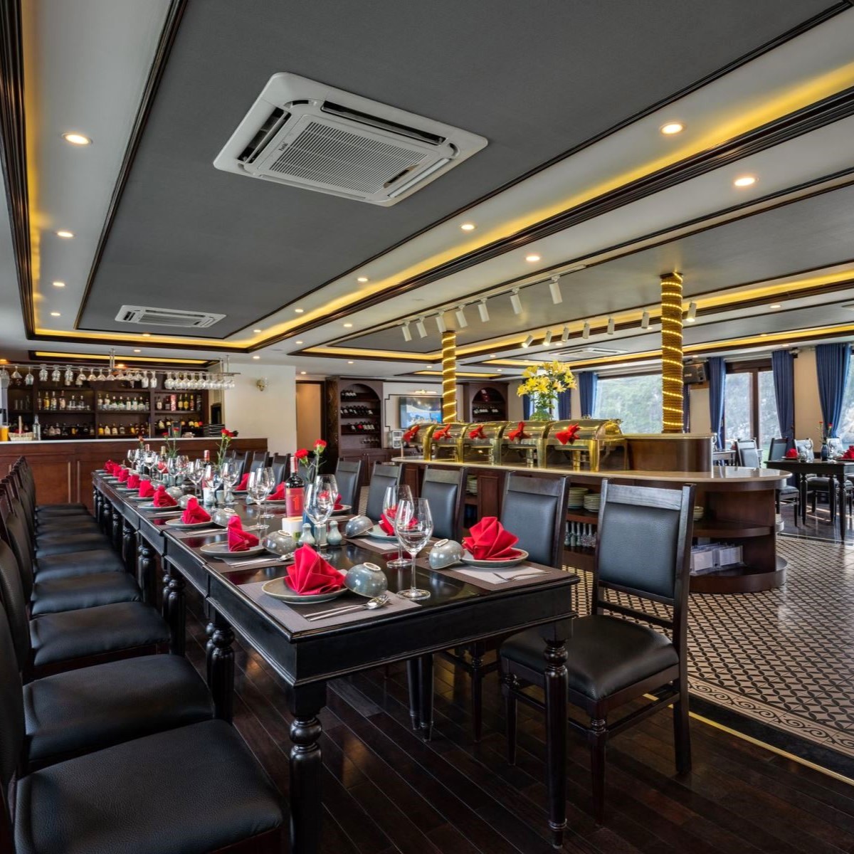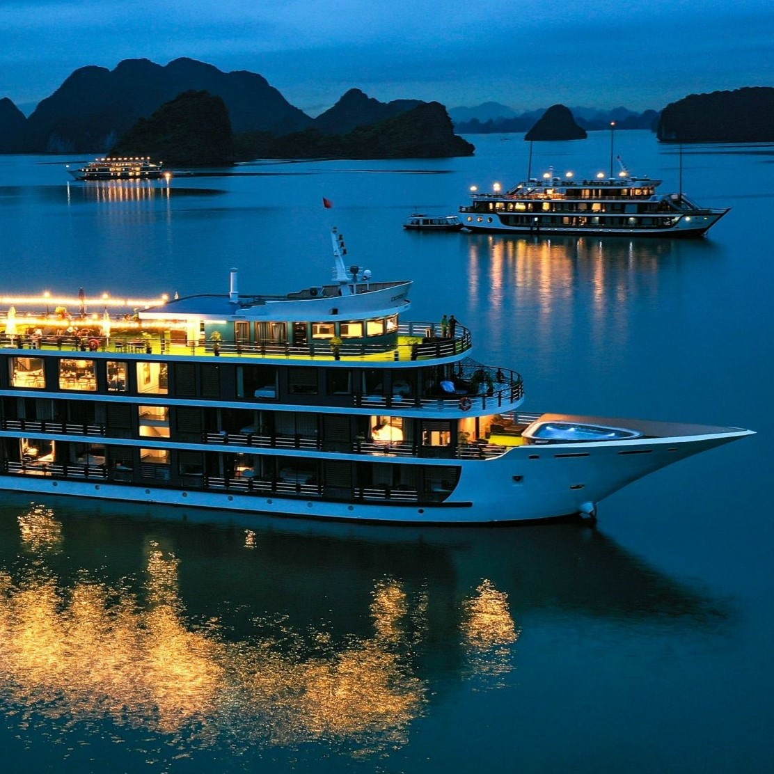 Ăn tối trên boong tàu và tận hưởng không gian yên bình của Vịnh Hạ Long về đêm. Thưởng thức đồ uống tại Sky Bar ngắm Vịnh Hạ Long về đêm hoặc tham gia câu mực. Nghỉ đêm trên tàu. |