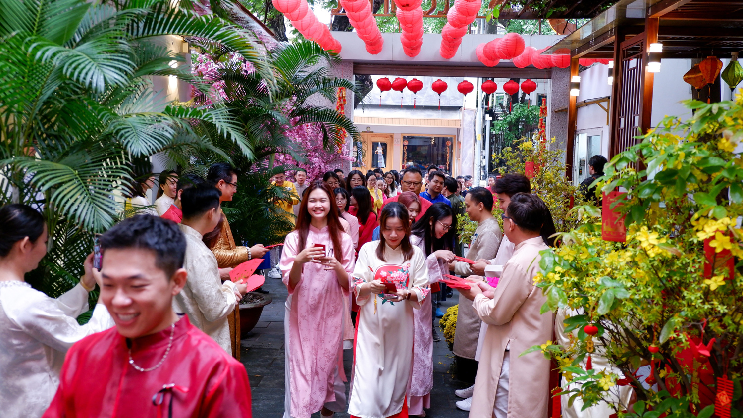 Toàn thể Cán bộ - Nhân viên TST Tourist khoác lên mình tà áo dài truyền thống, cùng nhau trao nhau những lời chúc năm mới đầy kỳ vọng. Không khí tưng bừng phấn khởi tạo nên một màn khởi động năm mới đầy cảm hứng và gắn kết.