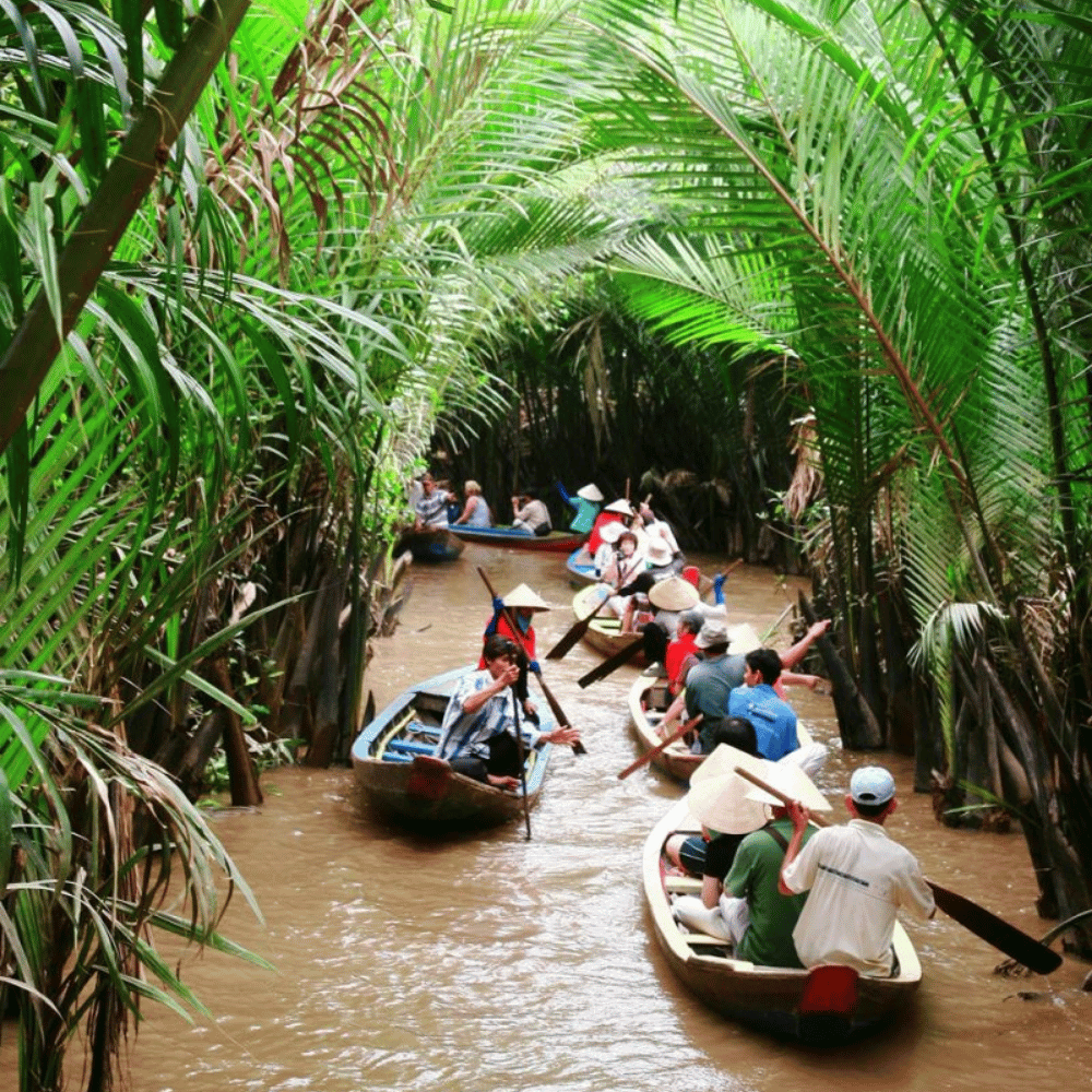11:30 Ăn trưa. Làm thủ tục nhận phòng tại Coco Island - điểm nghỉ dưỡng sinh thái ven sông nổi bật với cây cầu dừa dài nhất miền Tây (hơn 300m). Buổi chiều, quý khách thay trang phục áo bà ba và tham gia tát mương bắt cá – một hoạt động tái hiện lại một phần cuộc sống của người dân Nam Bộ xưa. (hỗ trợ nướng trui cá Lóc bắt được) Ăn tối. Nghỉ đêm tại Coco Island. |