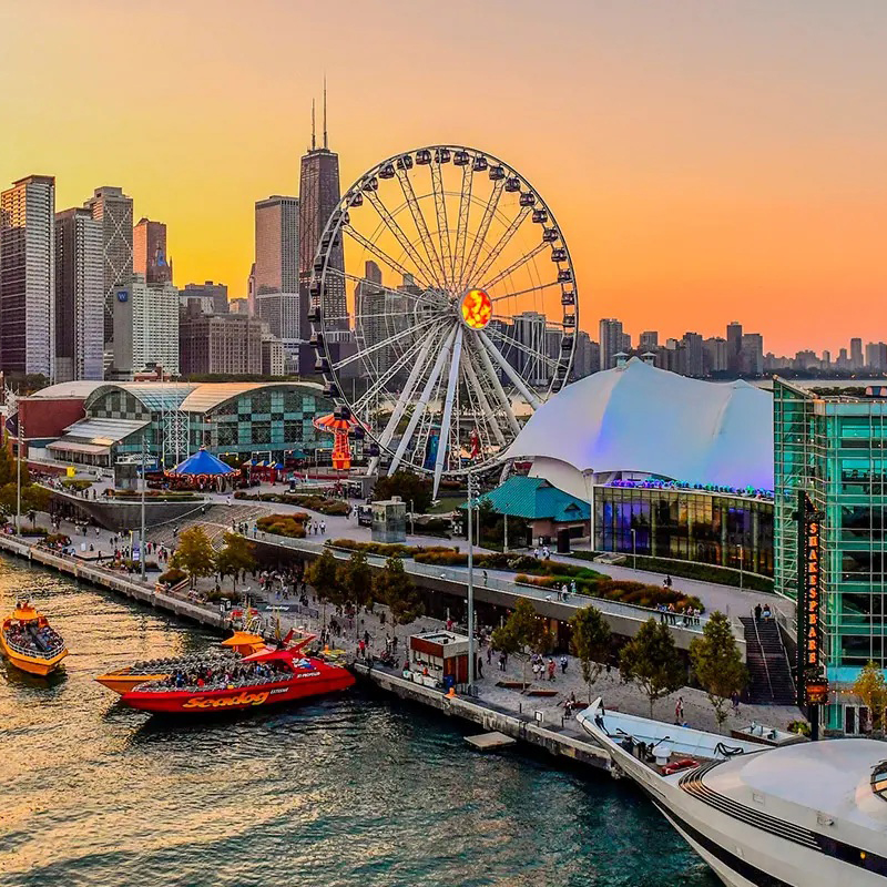 Đến giờ hẹn, trưởng đoàn TST Tourist đón Quý khách tại sân bay quốc tế Tân Sơn Nhất, làm thủ tục đáp chuyến bay đi Chicago. Đến Chicago, sau khi nhập cảnh, xe đón đoàn tham quan: