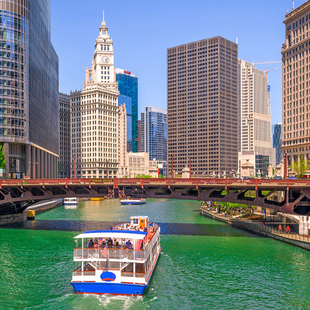 Đoàn ăn sáng. Quý khách trải nghiệm du thuyền Chicago River Cruise, chiêm ngưỡng đường chân trời và các công trình kiến trúc đặc trưng của thành phố. Ăn trưa, sau đó đoàn tham quan Bảo tàng Lịch sử Tự nhiên Field, nổi tiếng với các bộ sưu tập hóa thạch khủng long. Kết thúc ngày bằng thời gian tự do mua sắm tại Michigan Avenue. Ăn tối, nghỉ đêm tại khách sạn. |
