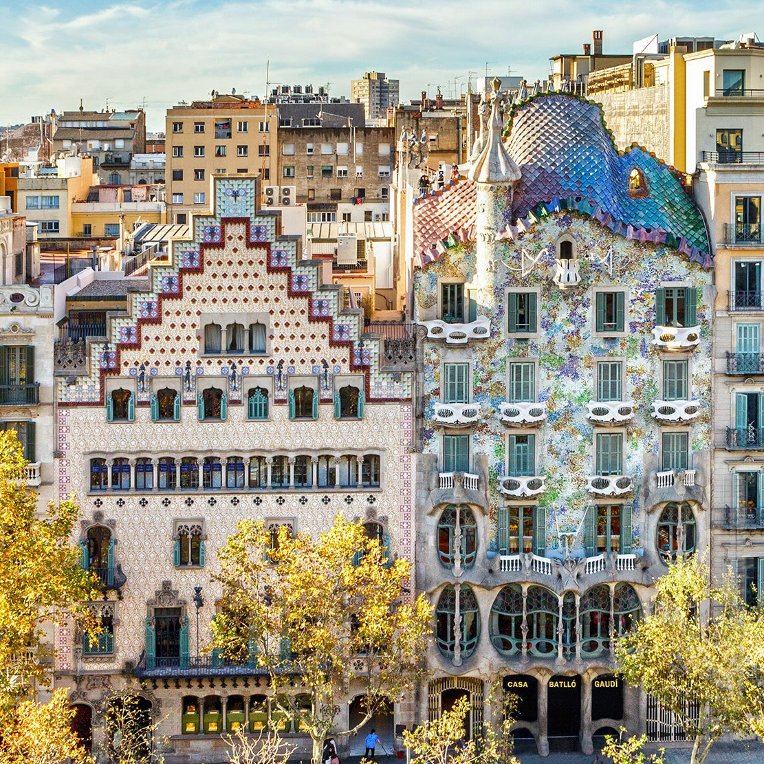 Đoàn ăn sáng, xe đưa đoàn đi tham quan bên ngoài các công trình kiến trúc ấn tượng tại Đại lộ Passeig de Gràcia: