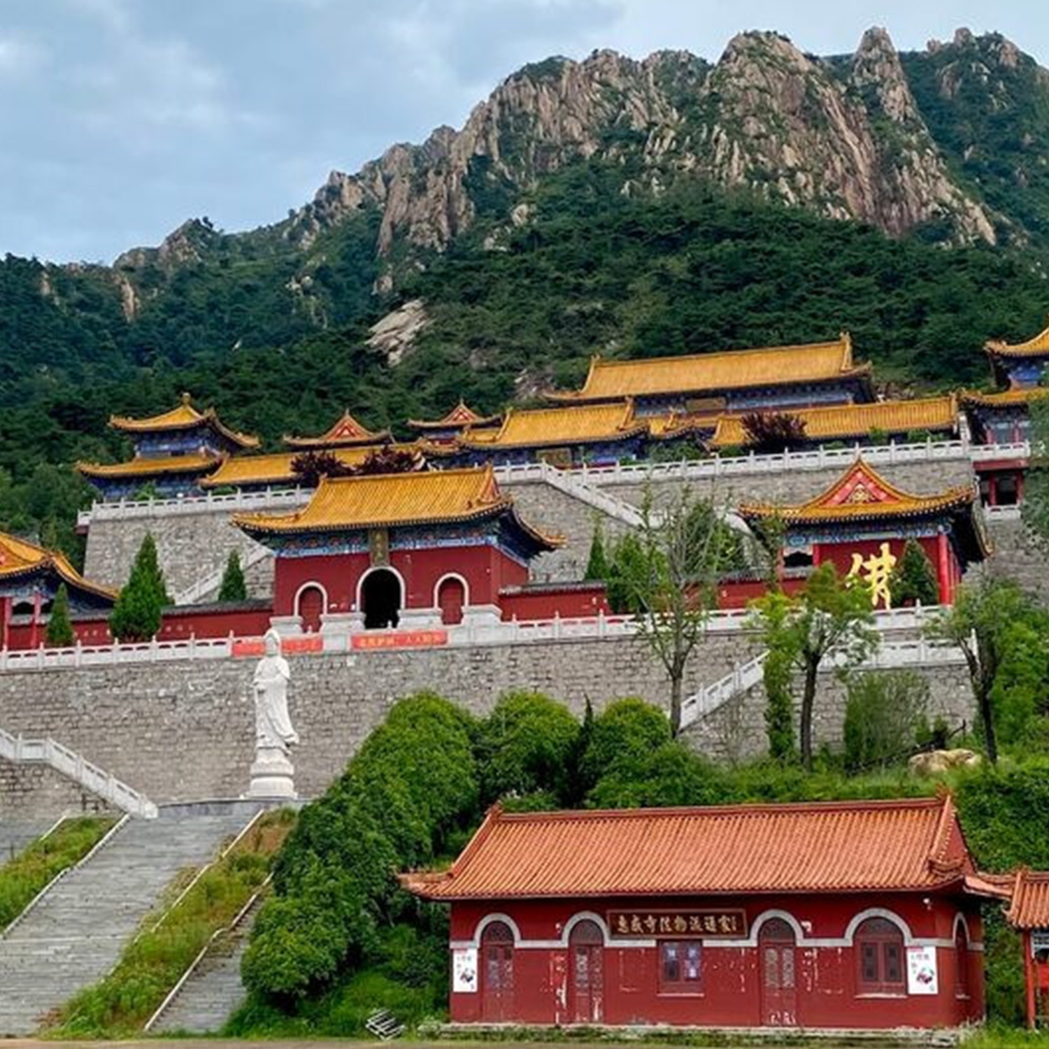Đoàn ăn trưa với các món chay thực dưỡng. Buổi chiều đoàn tham quan các công trình nổi tiếng như: Tàng kinh các, Thiên Phật điện, Thiên Vương điện, đình Đạt Ma, Đại Hùng Bảo điện... trên diện tích khoảng 60.000 m2.