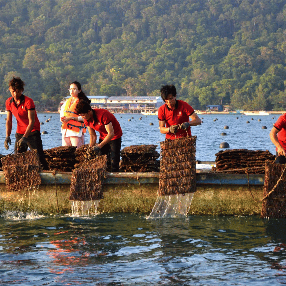 Đoàn dùng bữa trưa trên tàu với các món hải sản tươi ngon và hấp dẫn. Đoàn đi tàu về lại đất liền và khám phá các điểm: