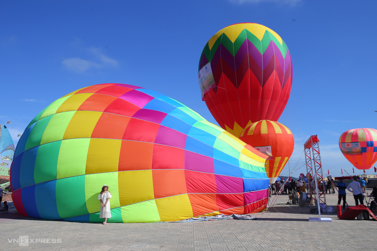 Một khinh khí cầu cỡ lớn được thổi phồng để du khách vào bên trong tham quan, check-in. Giá mỗi lượt 25.000 đồng với người lớn, 15.000 đối với trẻ em.