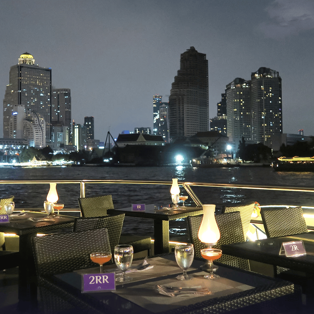 Tận hưởng một buổi tối lãng mạn sôi động trên dòng Chao Phraya River biểu tượng của thành phố Bangkok.