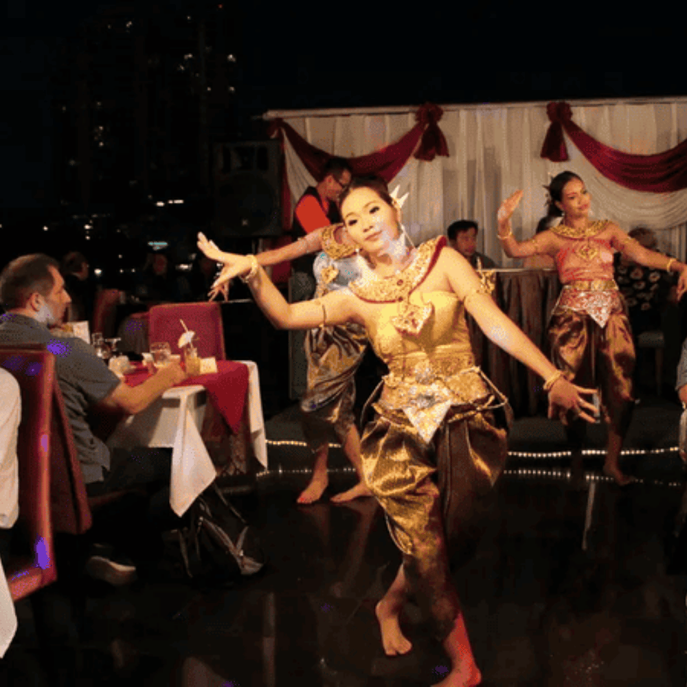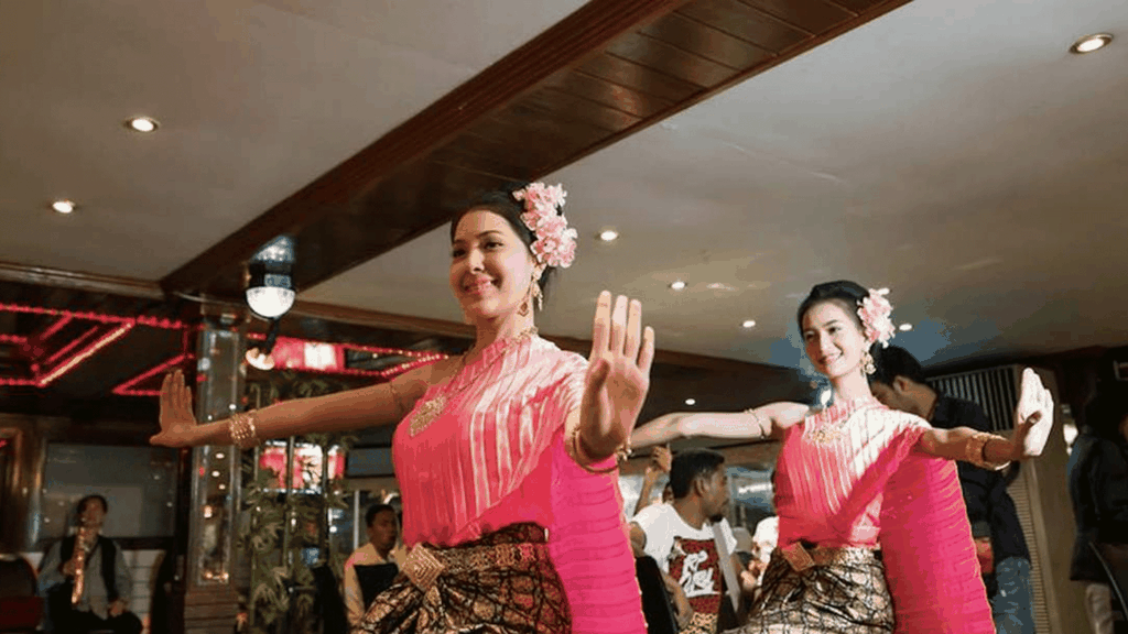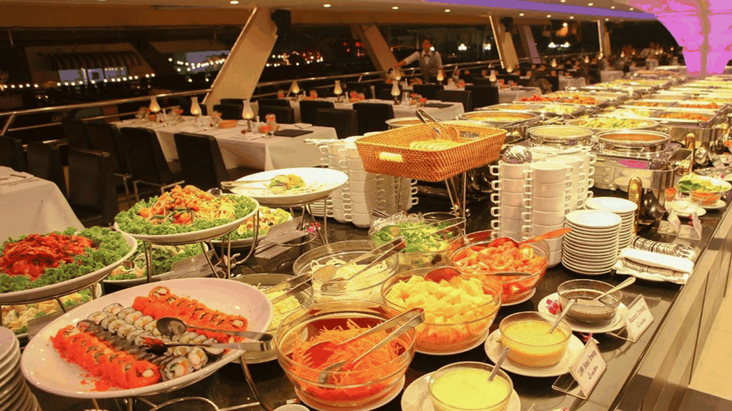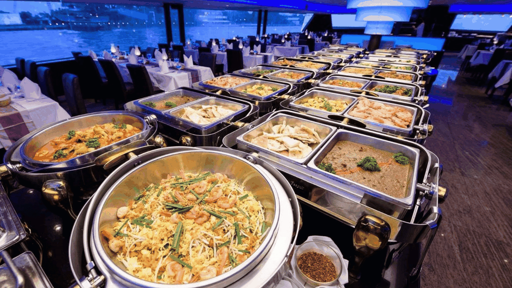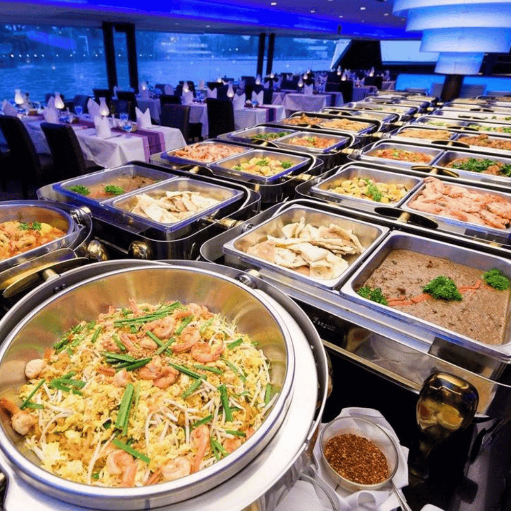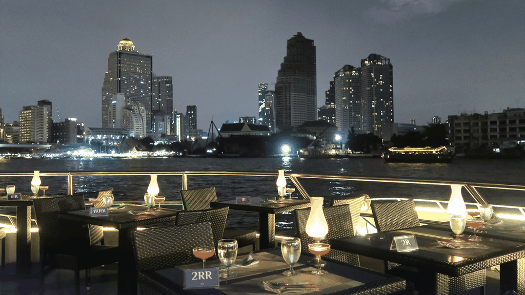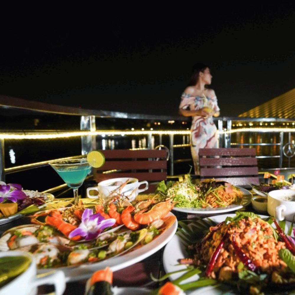 Cách tưởng nhất để cảm nhận vẻ đẹp Bangkok về đêm chính lên du thuyền thong thả xuôi dòng Chao Phraya. Ngay khi bước lên tàu, bạn sẽ được chào đón bằng đồ uống welcome drink, không gian sang trọng cùng tiếng nhạc nhẹ nhàng mở đầu cho một buổi tối thư giãn trọn vẹn.
