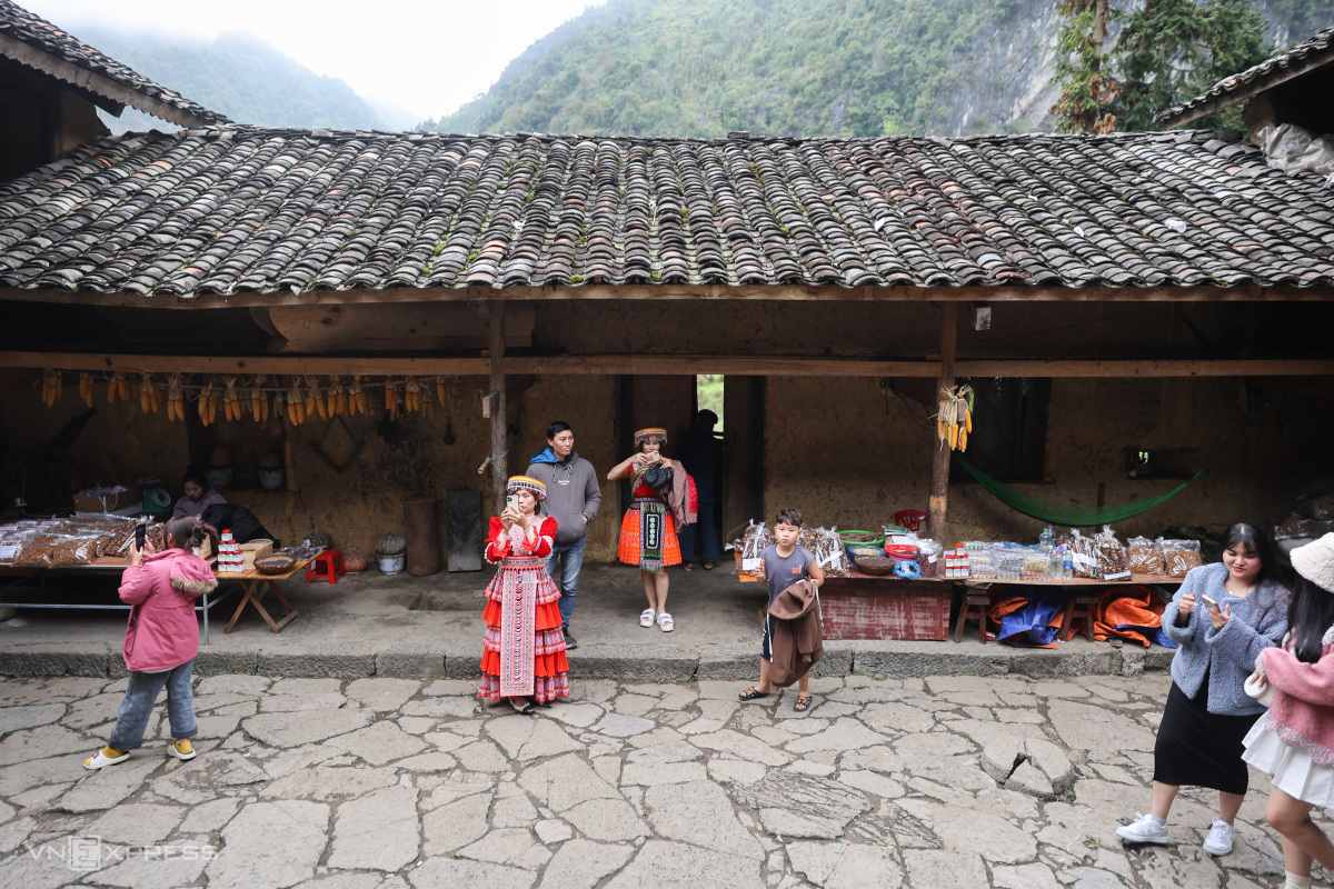 Hiên nhà đặt nhiều gùi hoa cải và tam giác mạch cho du khách chụp ảnh. Do vẫn có người sinh sống tại đây nên du khách phải xin phép chủ nhà trước khi vào trong tham quan, đồng thời không nên tự ý đụng vào đồ đạc.