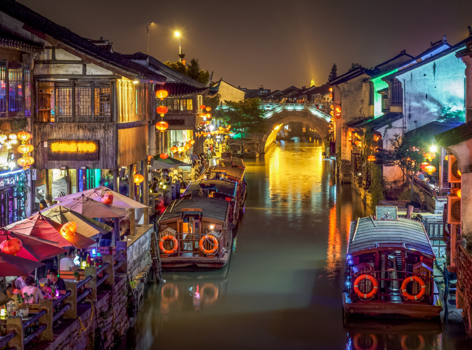 Thành phố Tô Châu về đêm - Ảnh: The StarMột điểm đến thú vị khi tham quan Giang Tô đó là Tô Châu - thành phố được mệnh danh là “Venice của phương Đông”. Tô Châu chỉ cách Thượng Hải khoảng 30 phút đi tàu cao tốc. Xưa kia Tô Châu thuộc vùng đất Giang Nam lãng mạn, trù phú, vốn đi sâu vào thơ ca, văn học và nghệ thuật của Trung Quốc.