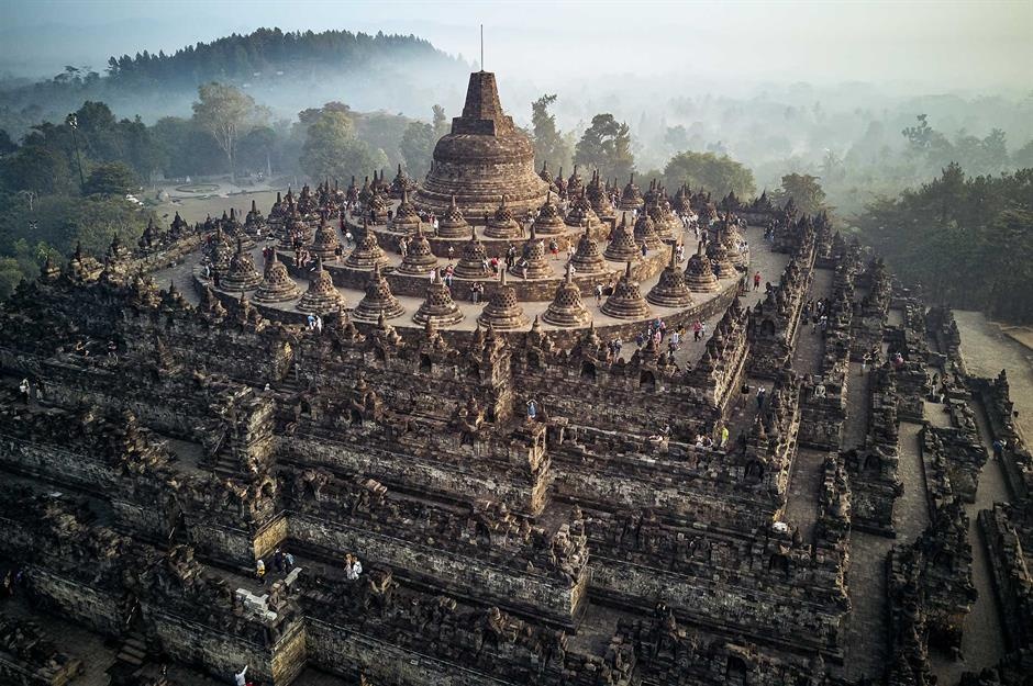 Borobudur, Indonesia: Có niên đại từ thế kỷ 9, ngôi chùa Phật giáo lớn nhất thế giới Borobudur ẩn mình dưới lớp tro núi lửa và thảm thực vật rừng rậm cho đến năm 1835. Công trình được cho là đã mất 75 năm để xây dựng và được cấu tạo từ andesite (đá núi lửa màu xám), được cắt, vận chuyển và lát mà không cần vữa. Ngày nay các nhà sử học không biết nhiều về việc xây dựng hoặc mục đích ban đầu của công trình. Họ vẫn đang nghiên cứu so sánh hàng nghìn bức phù điêu chạm khắc để tìm manh mối. Ảnh: Adel Newman.