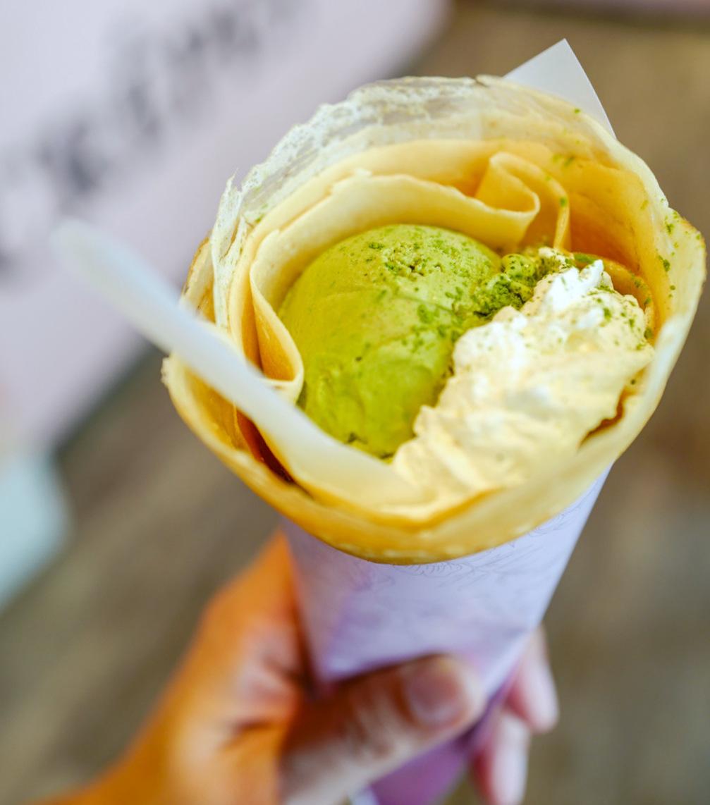 Những chiếc bánh Crepes đầy màu sắc và nhiều hương vị đã trở thành biểu tượng của vùng Harajuku. Đến Tokyo, bạn có thể tản bộ xuống phố Takeshita để tìm và thưởng thức món bánh crepes này tại quầy hàng có đông người xếp hàng nhất. Đó chính là nơi làm ra những chiếc bánh crepes ngon nhất.