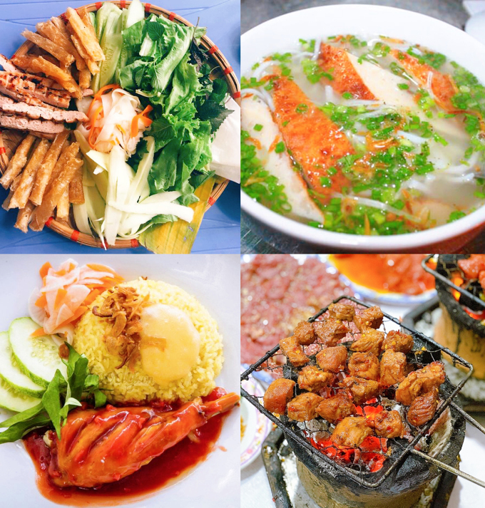 Những món ăn nên thử khi đến Nha Trang (từ trái qua: nem nướng, bánh canh chả cá, cơm gà sốt bơ, thịt nướng). (Nguồn: Trung Nghĩa, Ảnh: NVCC, VnExpress, Thứ bảy, 23/7/2022, 03:08 (GMT+7))