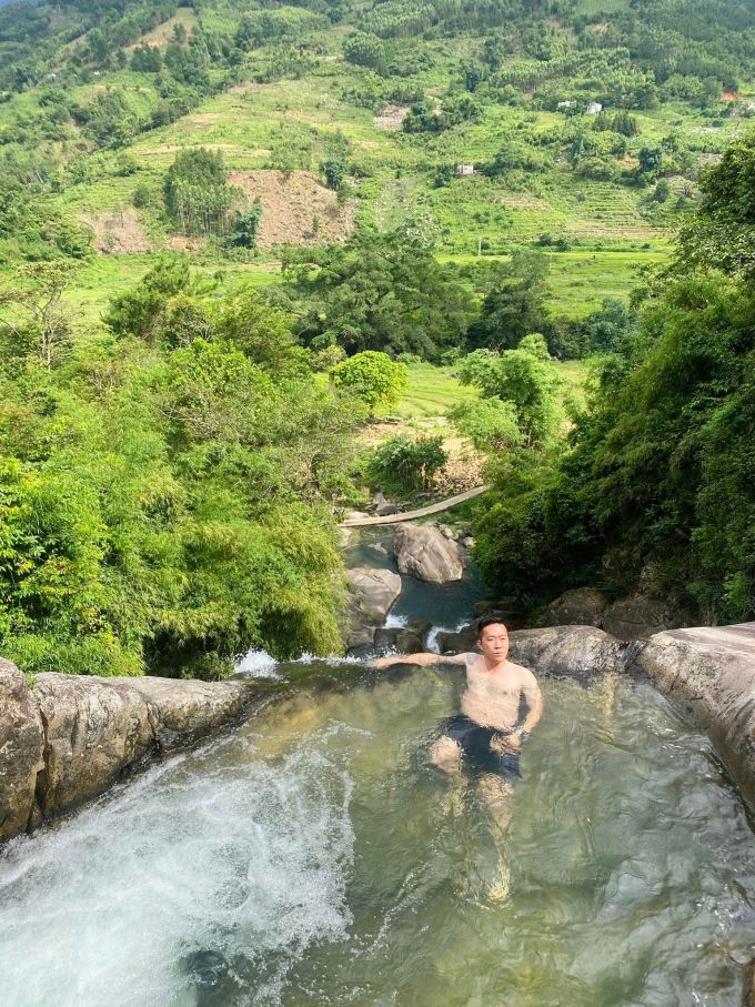 Tại bể bơi vô cực tự nhiên này, Hải thấy khoan khoái giữa mùa hè oi nóng, lại được nhìn xuống cảnh thiên nhiên hùng vĩ. "Mình là người yêu thích thiên nhiên hoang dã. Đi cũng rất nhiều nơi ở Việt Nam, chiêm ngưỡng nhiều ngọn thác đẹp nhưng thác Khe Vằn cho cảm giác bình yên lắm", Hải cảm nhận. "Thác được che phủ bởi cánh rừng nên mát mẻ cả vào những ngày hè oi ả, chảy nhẹ nhàng nên tắm ở đây thảnh thơi. Tuy nhiên, du khách tuyệt đối không tới vào những ngày mưa lớn, hoặc sau cơn mưa cũng không nên tắm vì dễ có lũ về", anh lưu ý thêm.