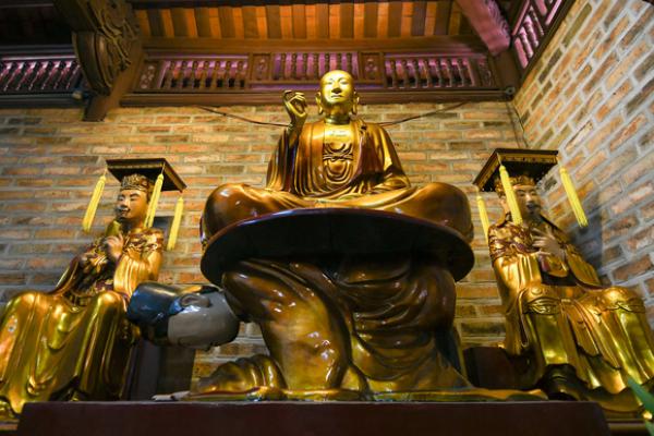 Hệ thống tượng Phật ở đây được giới khảo cổ gia ghi nhận là đa dạng về chất liệu như gỗ quý, đất nện, đồng hun.