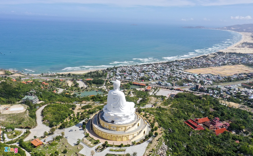 Tượng phật Thích Ca cao 69 m trên đỉnh Chóp Vung bên tuyến đường ven biển ở huyện Phù Cát (Bình Định) thu hút hàng chục nghìn du khách đến tham quan, chiêm ngưỡng mỗi năm.