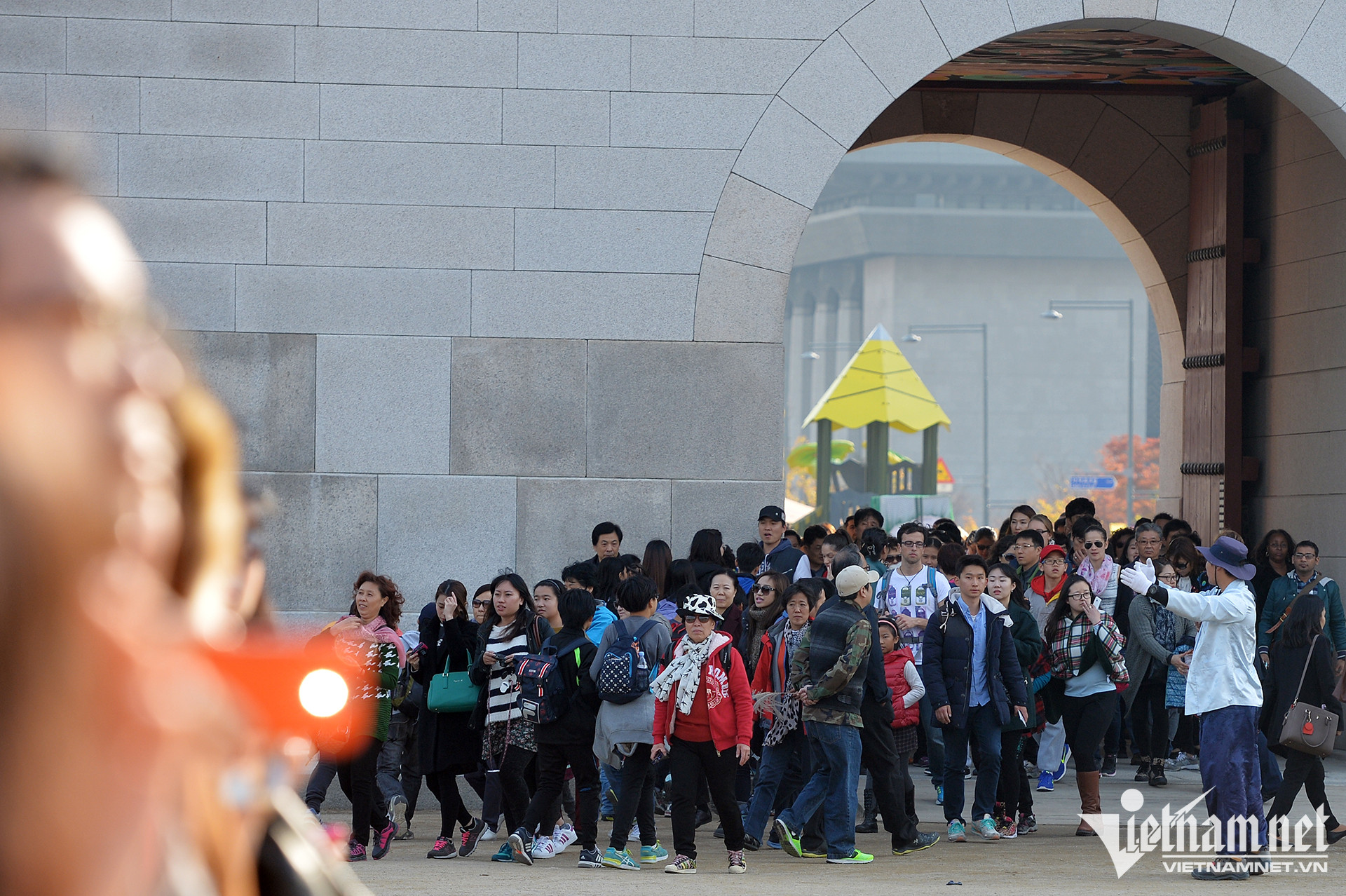 Sau khi nghi lễ đổi gác kết thúc, hàng trăm du khách bắt đầu tràn ra ngoài theo sự hướng dẫn của nhân viên khu du lịch.