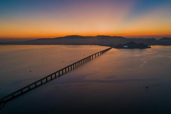 Cầu Thị Nại dài gần 7 km nối thành phố Quy Nhơn với bán đảo Phương Mai. Từ trên cầu, du khách có thể đón được những tia sáng đầu tiên ánh lên trên đường chân trời trên đầm Thị Nại, hòa mình vào bầu không khí trong lành nơi đây. Ảnh: Trung Phạm.