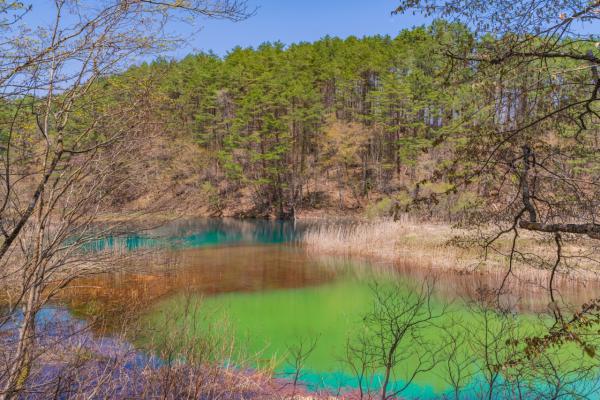 Goshiki-numa là cụm hồ nằm dưới chân núi Bandai thuộc Kitashiobara, Fukushima, Nhật Bản. Nơi này được hình thành khi núi Bandai phun trào vào năm 1888, phá hủy hàng chục ngôi làng, đồng thời tạo ra rất nhiều hồ. Trong đó, nổi tiếng nhất là cụm hồ Goshiki-numa, tên gọi này trong tiếng Nhật nghĩa là hồ Ngũ Sắc. Ảnh: Tohokukanko