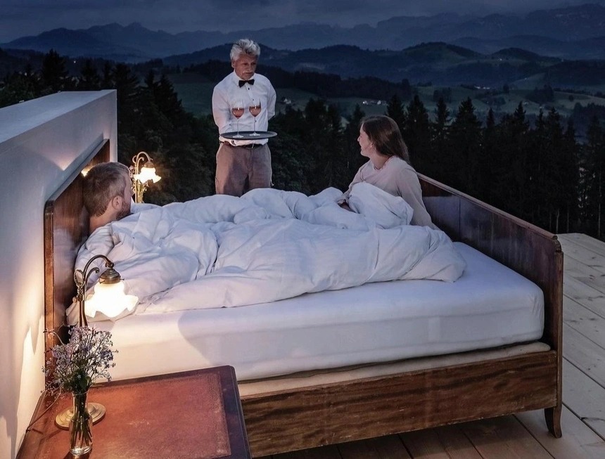 Khách sạn không trần, không tường này lại thu hút được sự quan tâm của nhiều du khách. Ảnh: Null Stern Hotel. Theo ông chủ của khách sạn, đây không phải là lúc để nghỉ ngơi. Frank Riklin chia sẻ: "Giấc ngủ ngon là một chuyện quan trọng nhưng đó không phải là tất cả. Những vẫn đề trên thế giới hiện tại mới là điều cấp thiết. Đây giống như tuyên ngôn về việc thay đổi những nhu cầu cấp bách trong xã hội".