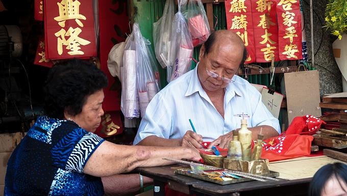 Cho chữ là hoạt động văn hoá chỉ có vào dịp Tết. Những ngày xuân về, người viết chữ thuê cũng bắt đầu tất bật để phục vụ người dân. Theo quan niệm của người Hoa, màu đỏ là biểu tượng của sự may mắn, những điều tốt lành. Chính vì vậy mà hầu như các câu chữ đều được viết trên nền màu đỏ. Tuỳ theo kích cỡ, loại giấy, câu chữ theo khách yêu cầu mà giá sẽ thay đổi. Có loại 35.000 – 90.000 – 150.000 đồng và dao động đến 400.000 – 500.000 đồng.
