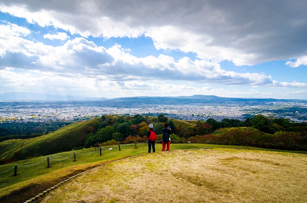 Wakakusa -cao 350 m - là một ngọn núi lửa đã tắt, nằm ở phía sau công viên Nara, tỉnh Nara, Nhật Bản. Từ đỉnh núi, du khách có thể phóng tầm nhìn toàn cảnh thành phố Nara. Ảnh: Nathan Vennekens.