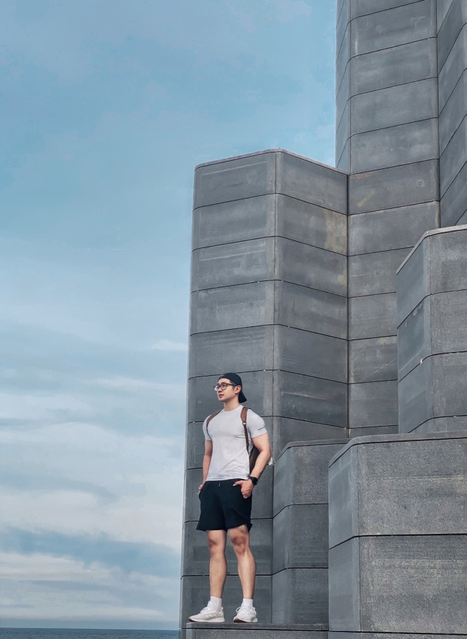 Tùng check-in với tháp Nghinh Phong. "Khu vực này chụp và ngắm hoàng hôn rất đẹp", anh chia sẻ. Tầm 18h, mặt trời lặn, Tùng về ăn uống, nghỉ ngơi. Mẹo du lịch Phú Yên ít ngày mà anh nhận ra là nên bay buổi sáng, không nên bay trưa chiều dễ mưa và đề phòng thời gian máy bay hay delay.