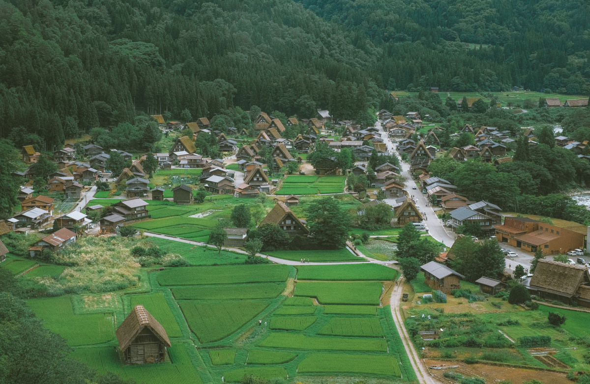 Ngôi làng huyền thoại Sharakagago, nổi tiếng với khung cảnh mùa đông tuyết trắng đẹp như cổ tích, đến hè màu xanh là chủ đạo trong bức tranh thiên nhiên.