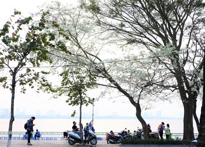 Ven đường Thanh Niên hướng hồ Tây là điểm hẹn quen thuộc của các nhiếp ảnh gia chuyên nghiệp lẫn nghiệp dư vì có nhiều hoa sưa, hoa ban nở khi mùa xuân đến.